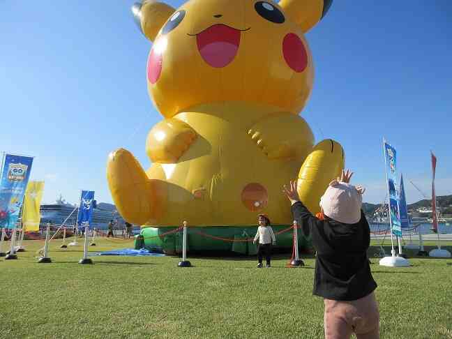 会場で大きなピカチュウを見つけて大興奮の子ども達♩