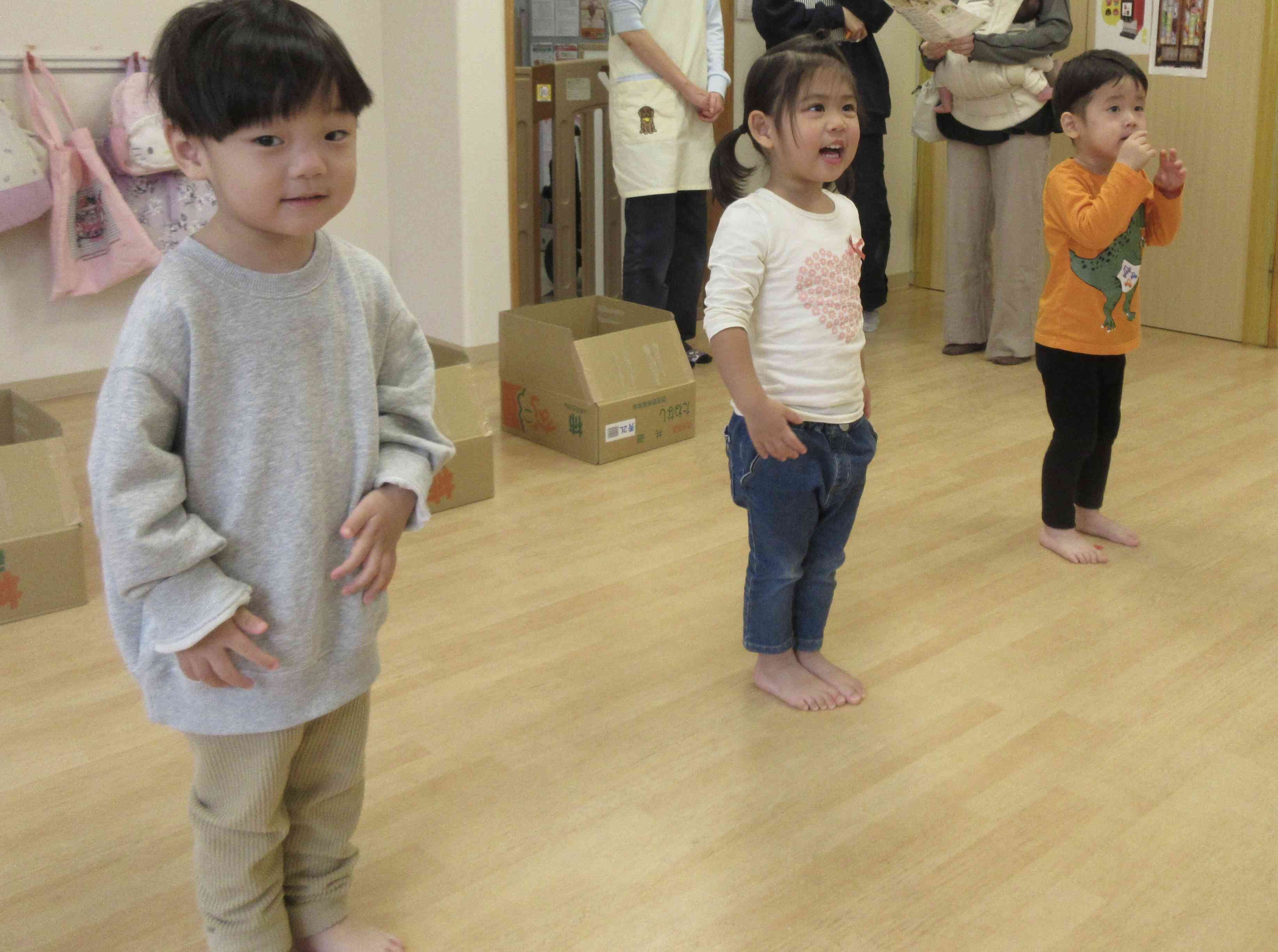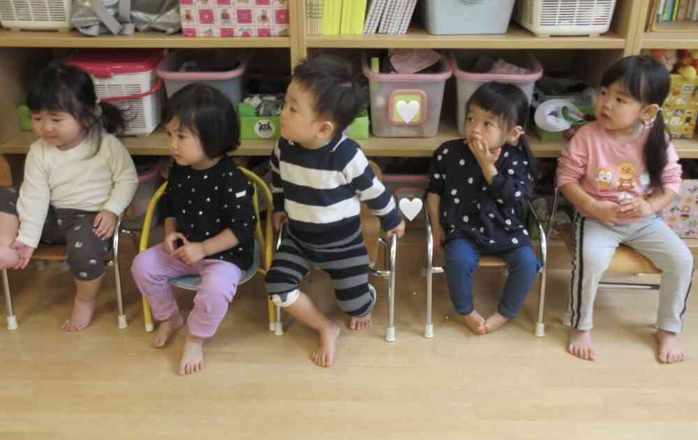 うさぎ組のお兄さんお姉さん達の姿を見ながら、あひる組、ひよこ組のお友だちも頑張っています。