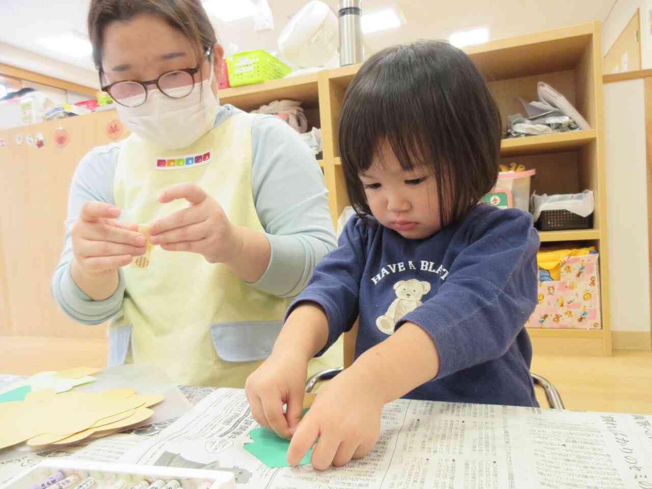 11月は食育活動で和え物を作ったり、クリスマス会のお遊戯の練習をしたり、勤労感謝のプレゼントをお世話になっているお魚屋さんへお渡ししに行ったり、英語レッスン、リズム遊び、制作活動と盛りだくさんに過ごしました!