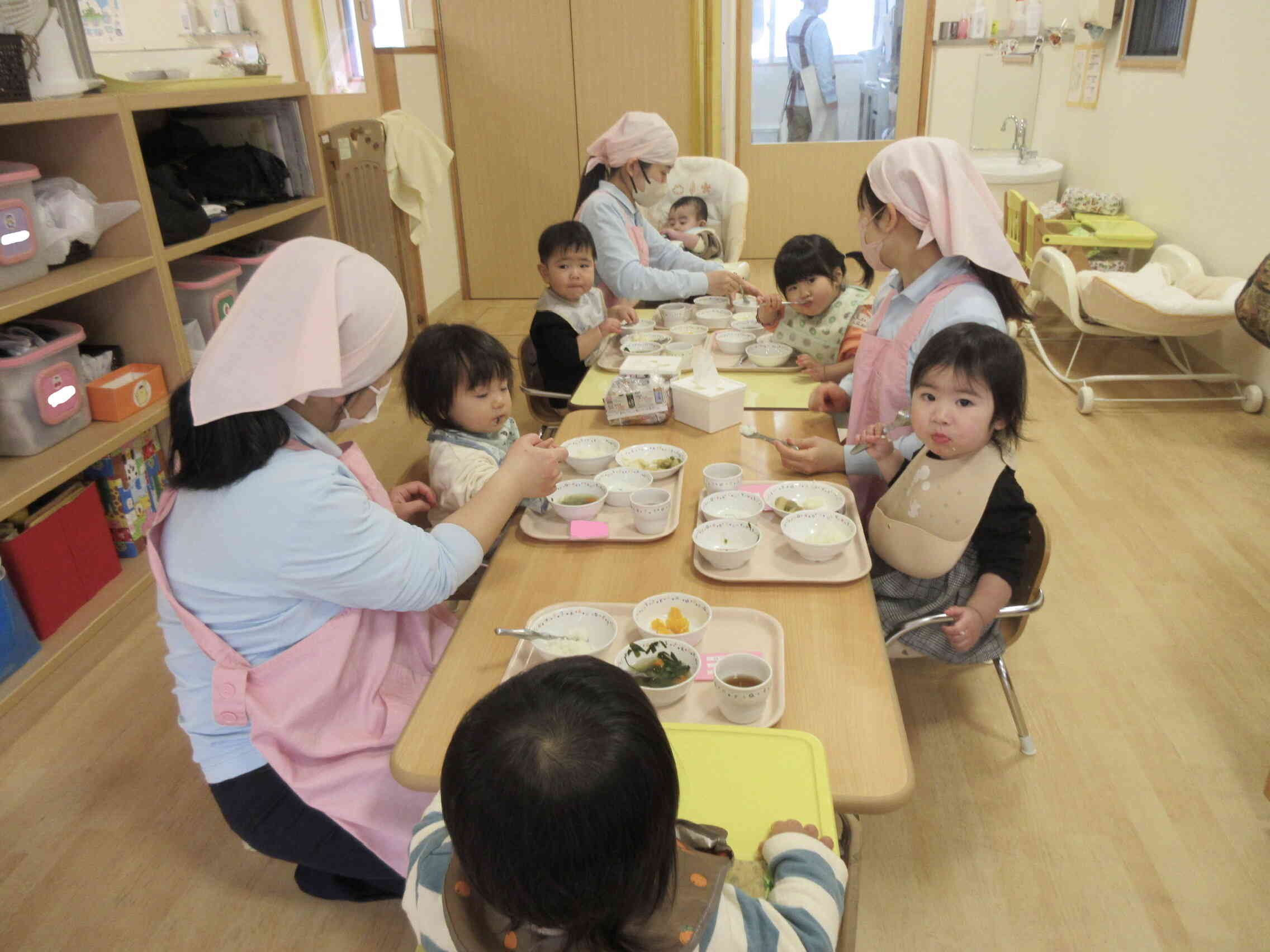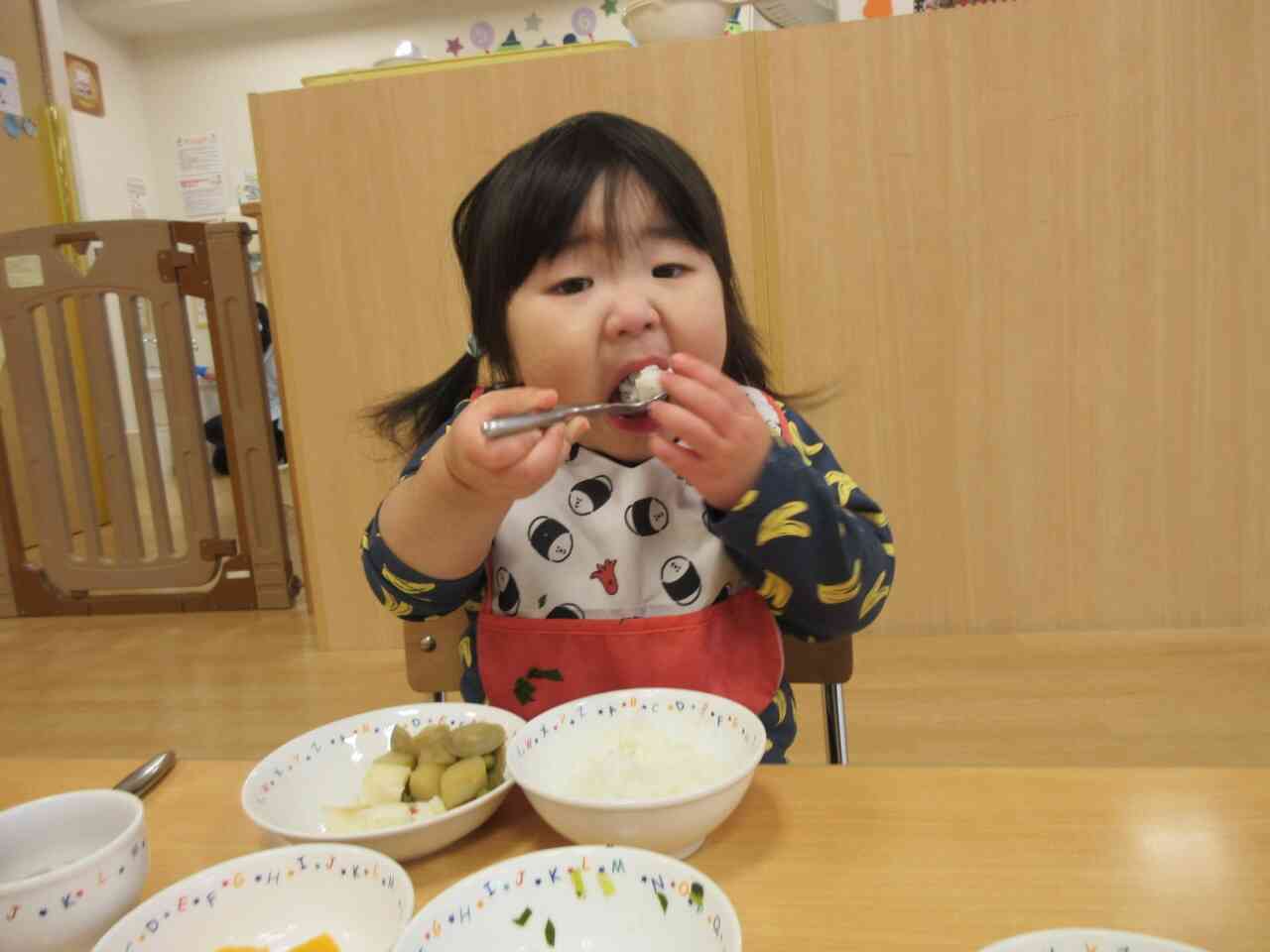お迎えに来たお父さんお母さんに「全部食べたよ!」「おかわりしたよ!」と報告する姿が可愛らしいです。