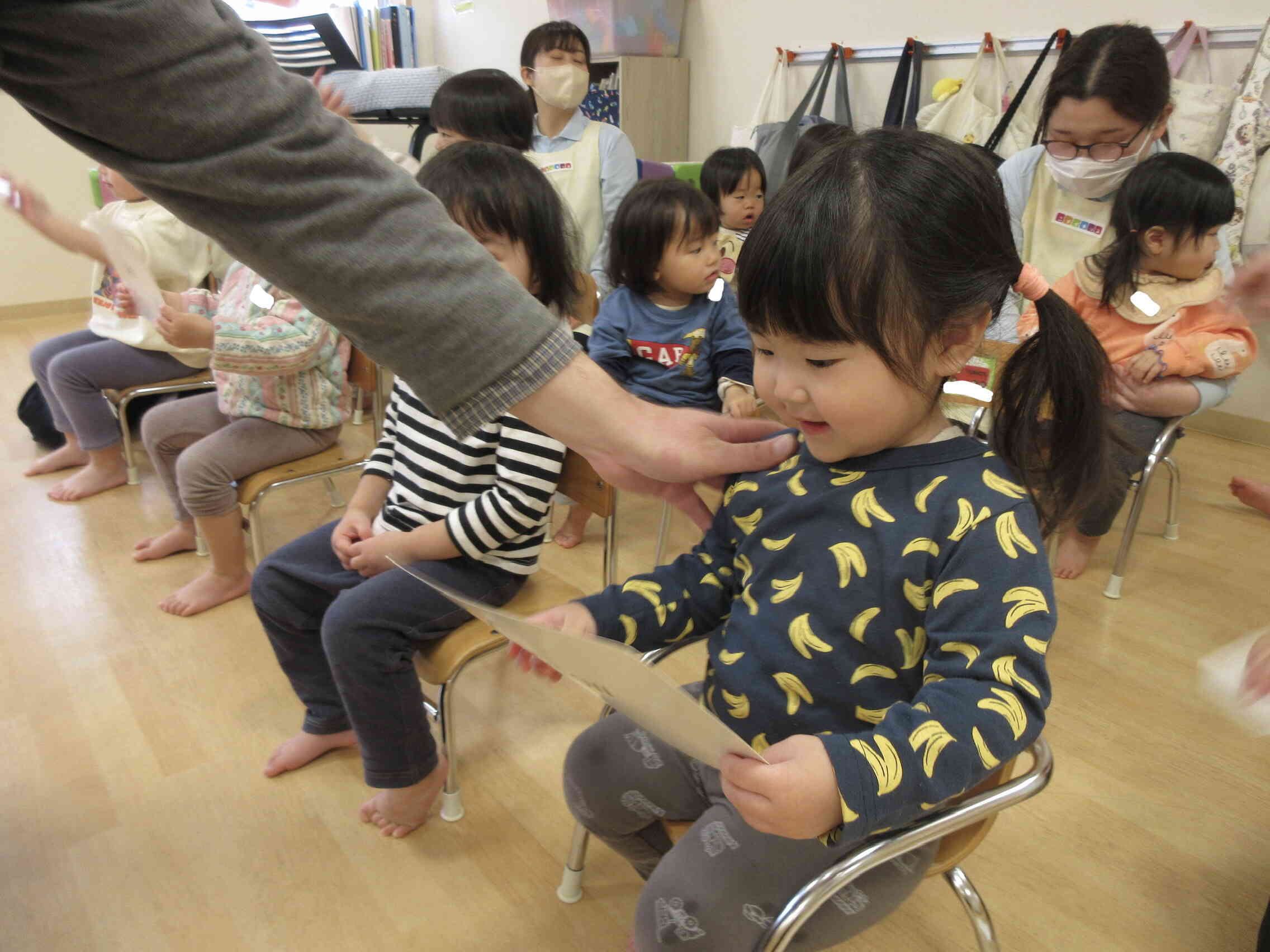 先生にイラストを貰って嬉しそうな様子のお友だちです。