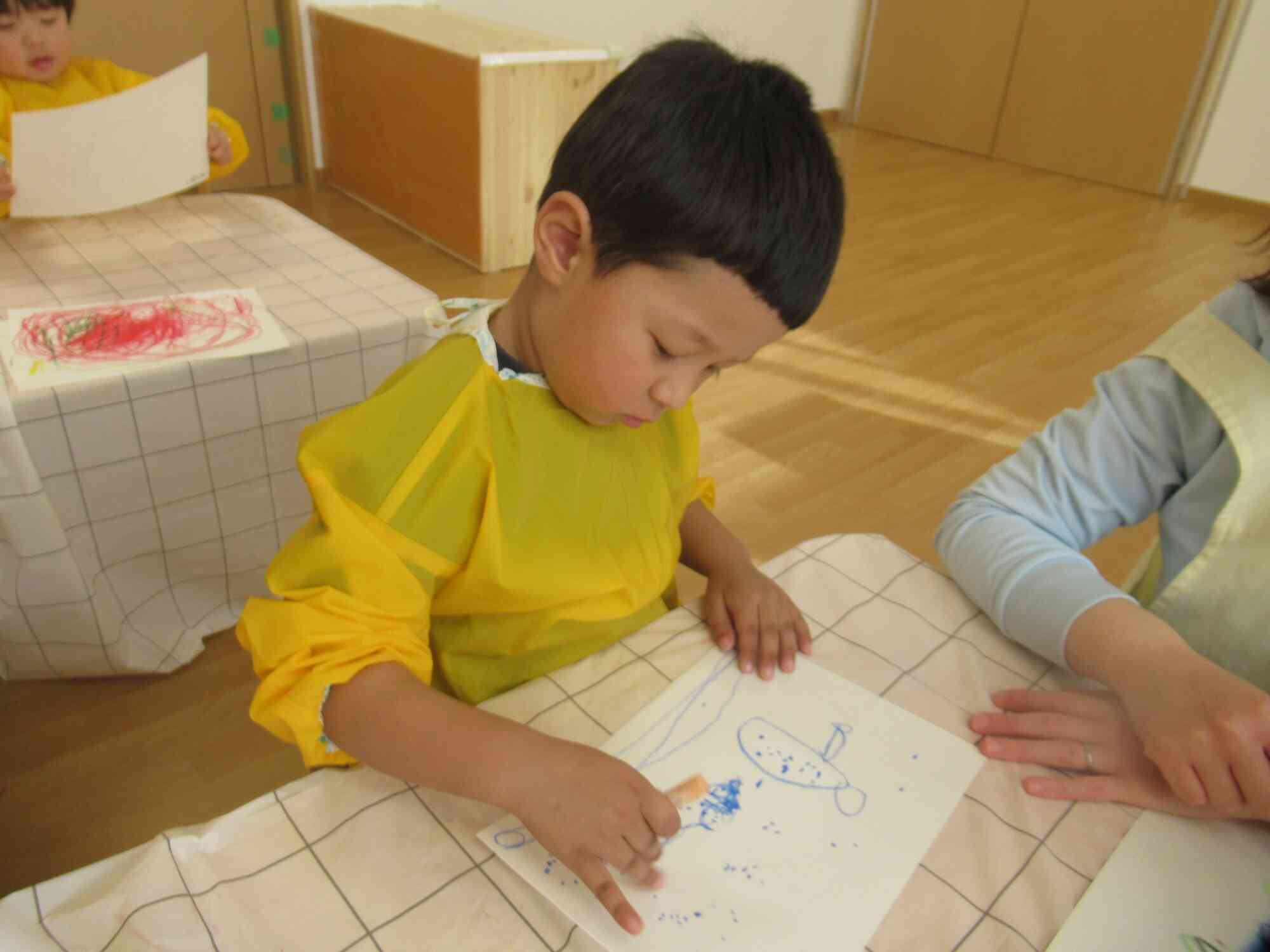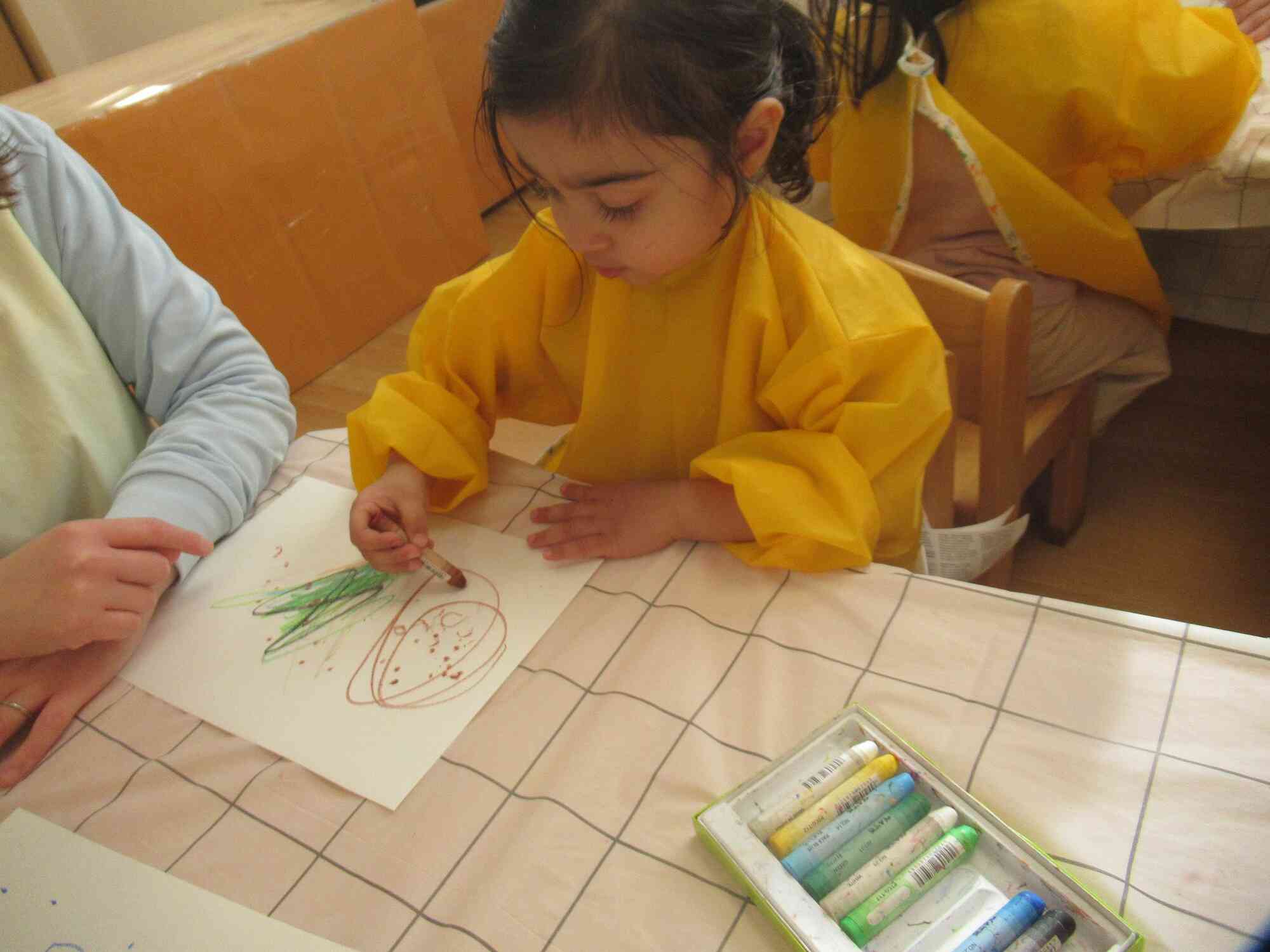 クレヨンを使って自由に描いています。