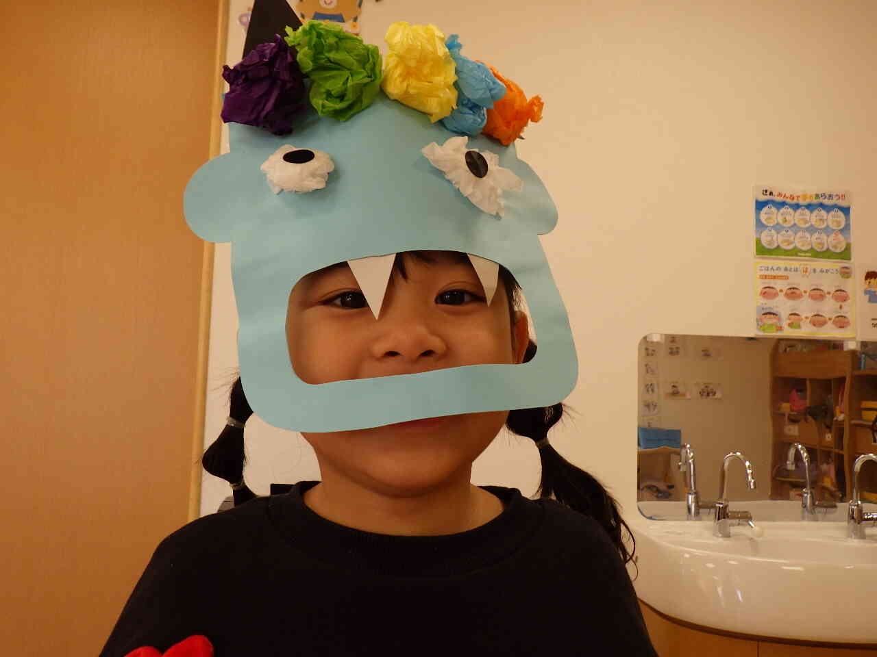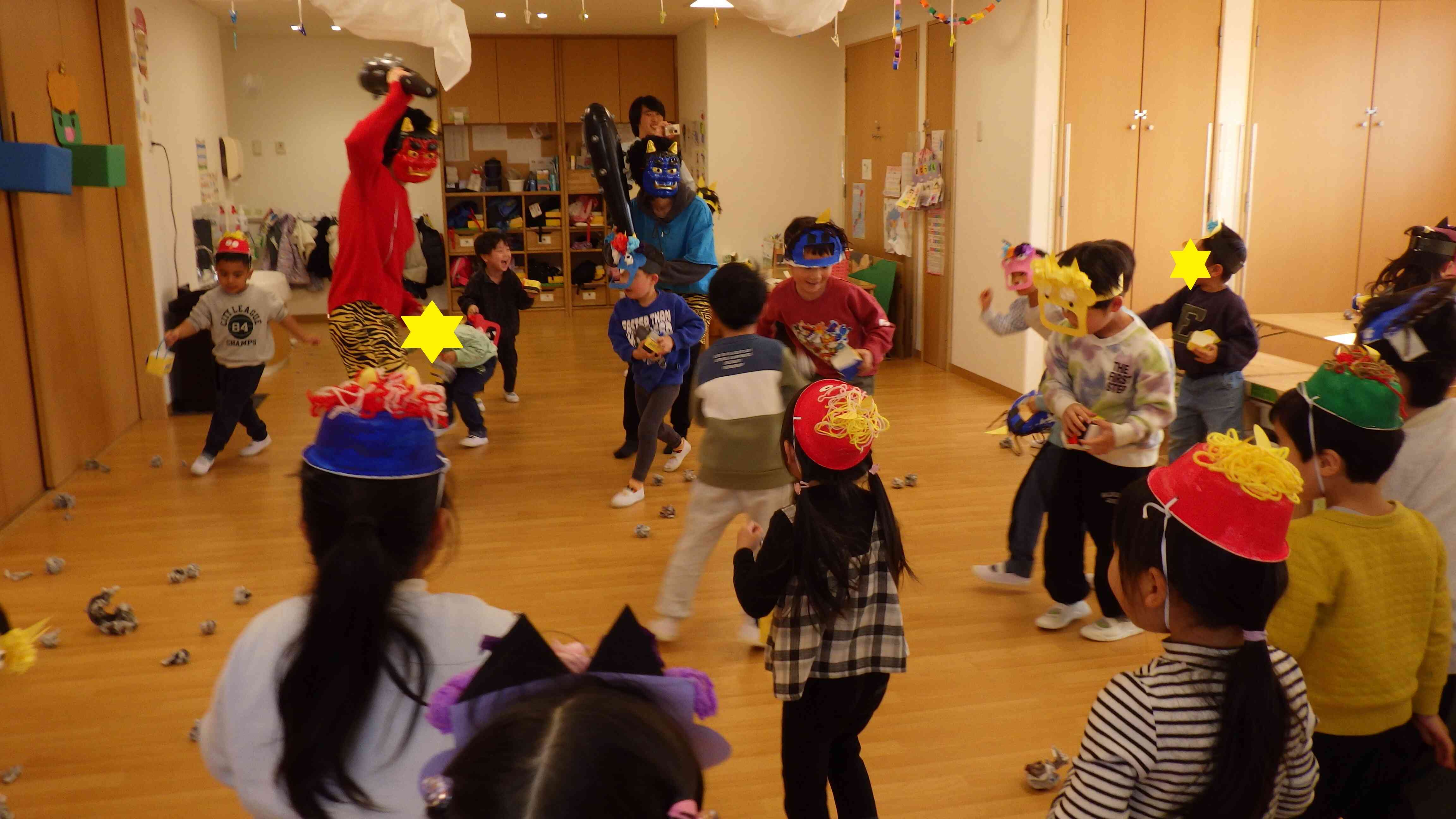 鬼のお面を被って、節分会に参加しました!