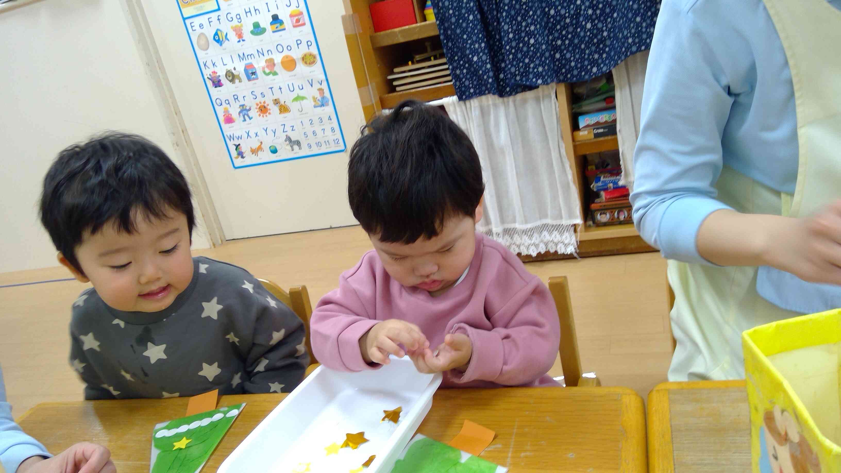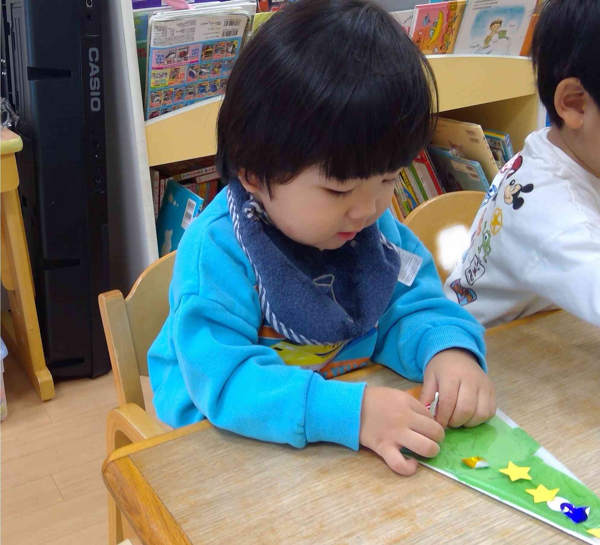 ツリーにペタっと貼って夢中で取り組んでいました