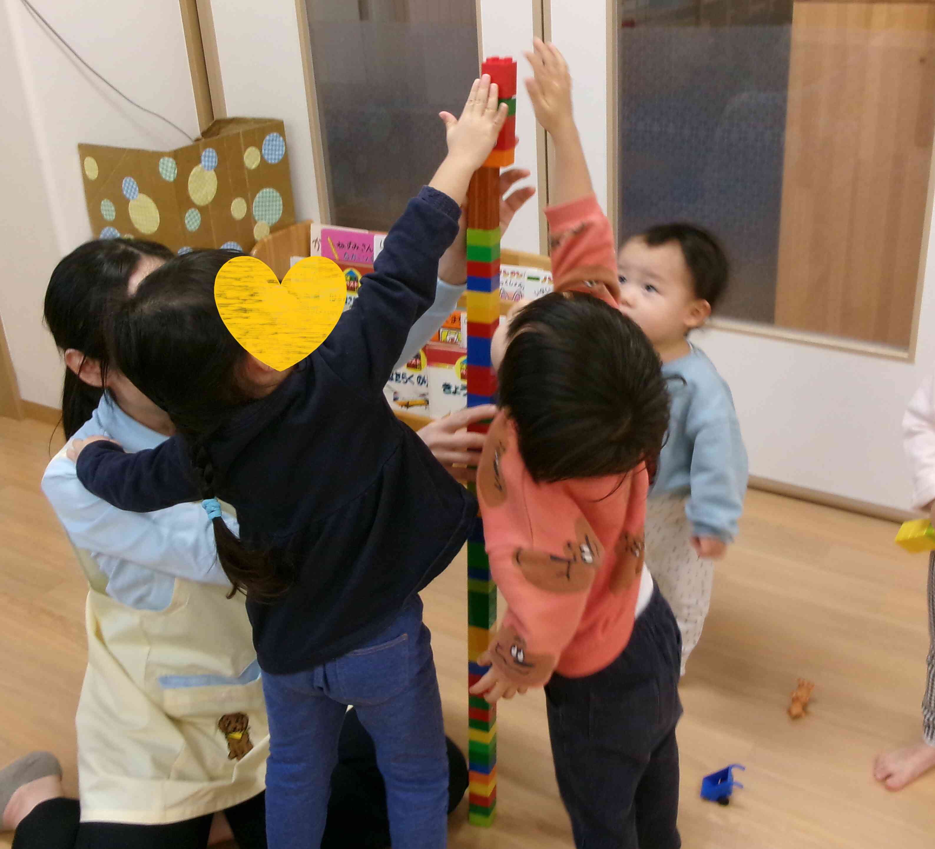 「今日はいっぱいブロックつむー!」とあそぶ前からワクワクのお友達。