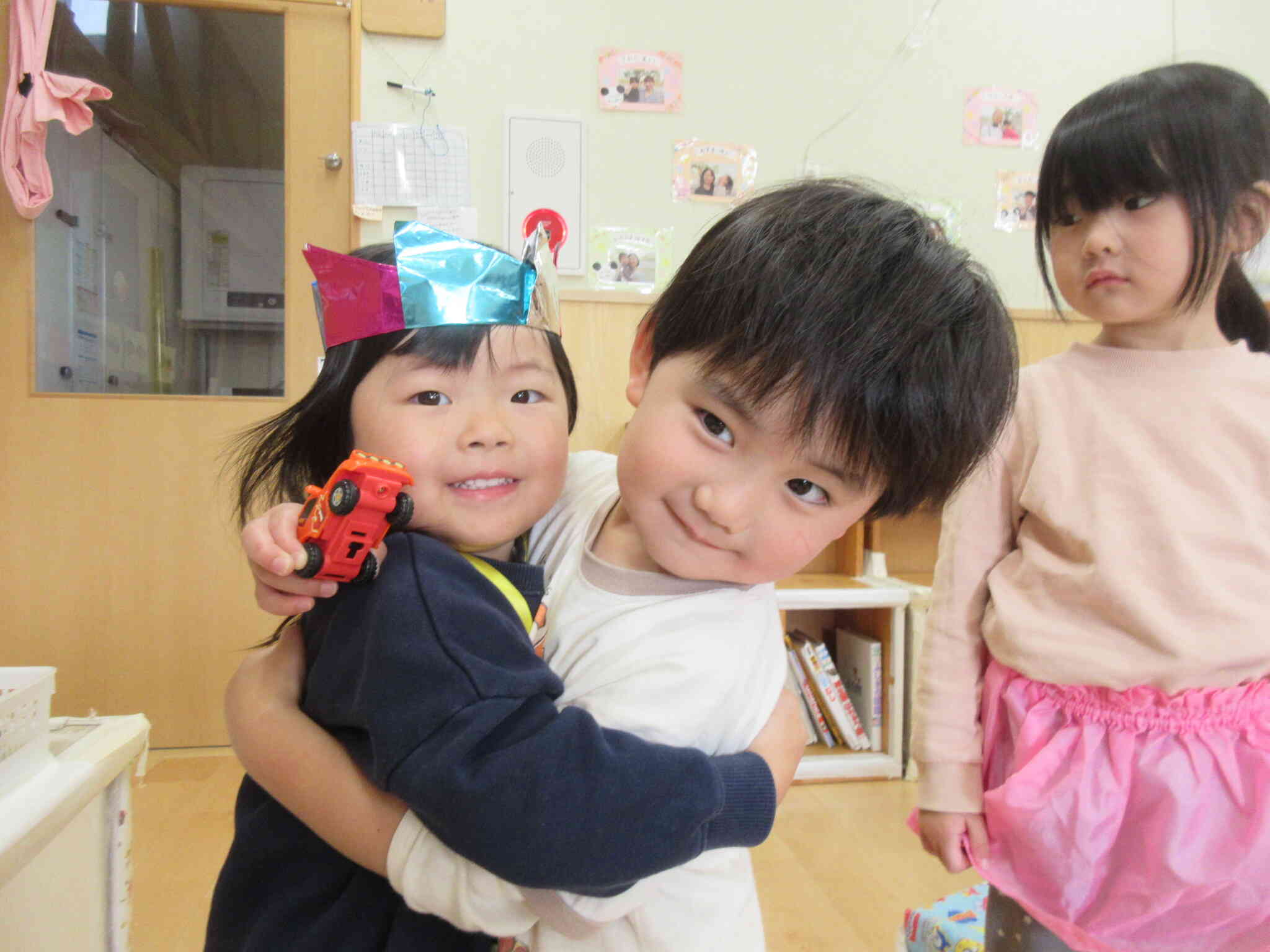 お友だちのお祝いのハグに大喜びで、仲良く写真撮影をしました。