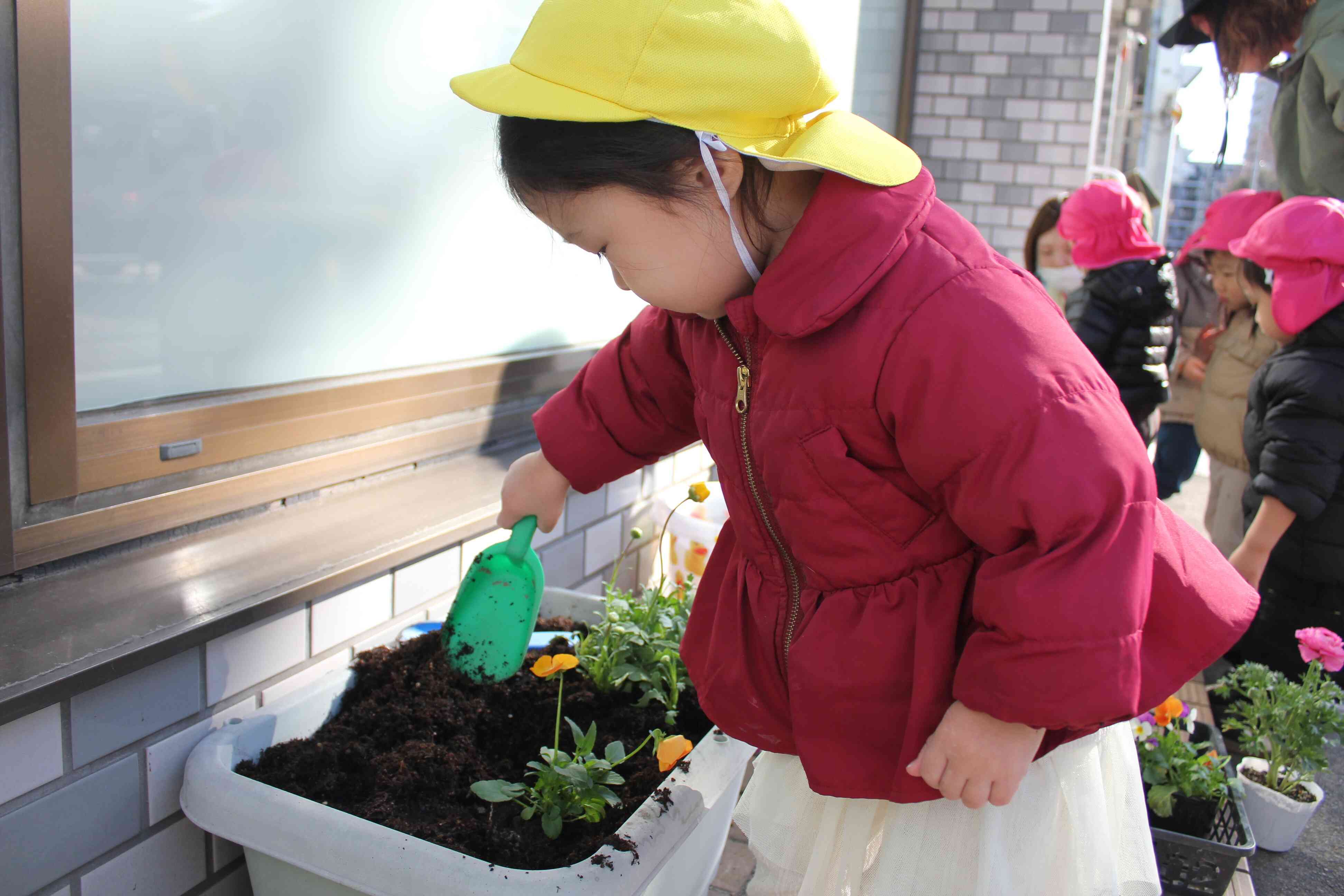 みんなでお花の苗を植えました。