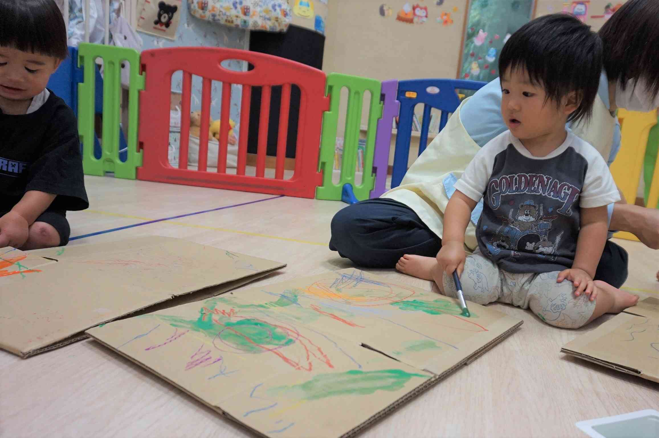 0歳児さんも筆でぬりぬり楽しそうです♪