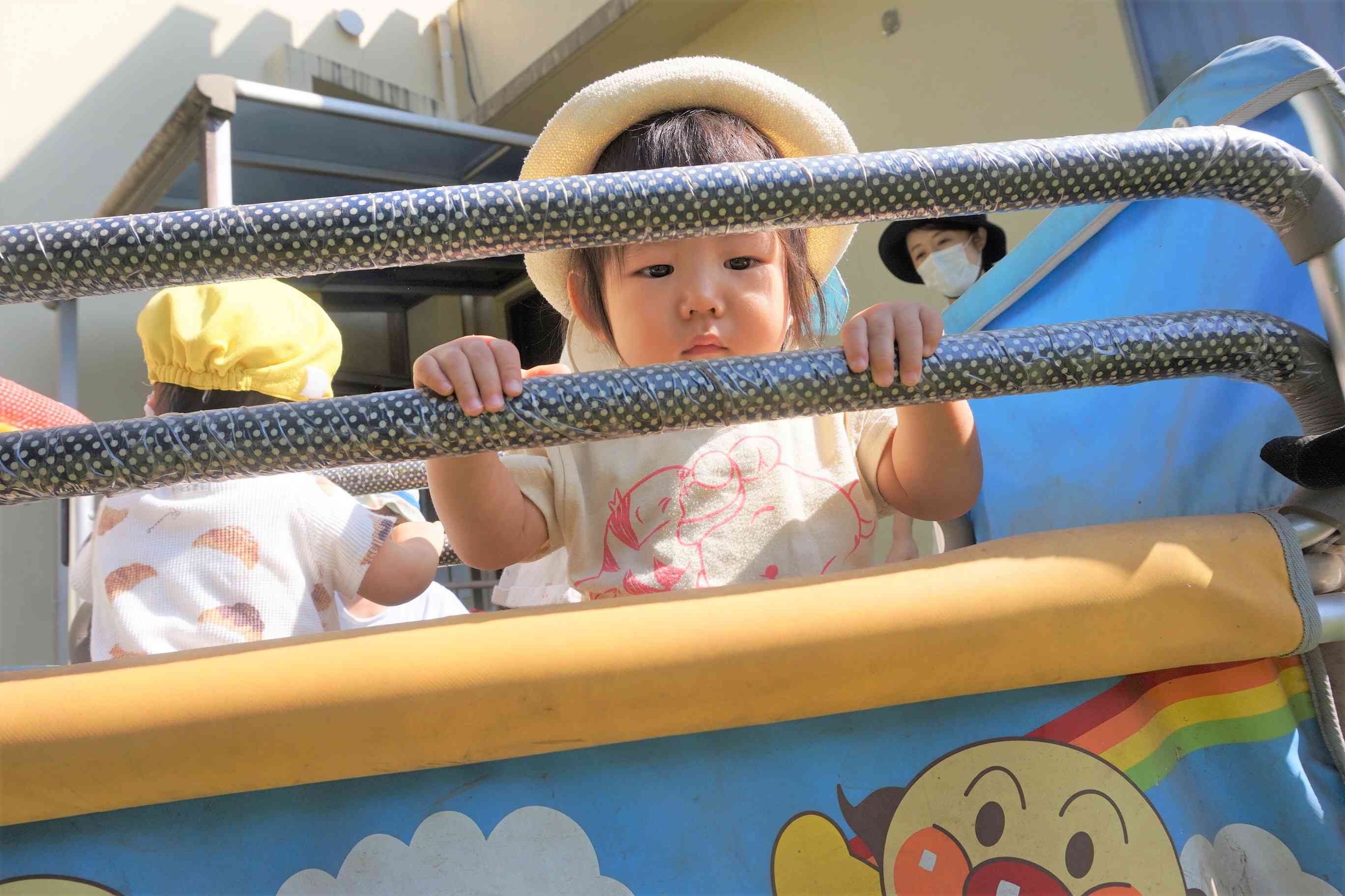 0歳児さんもお散歩カートに乗ってご機嫌です(^^♪