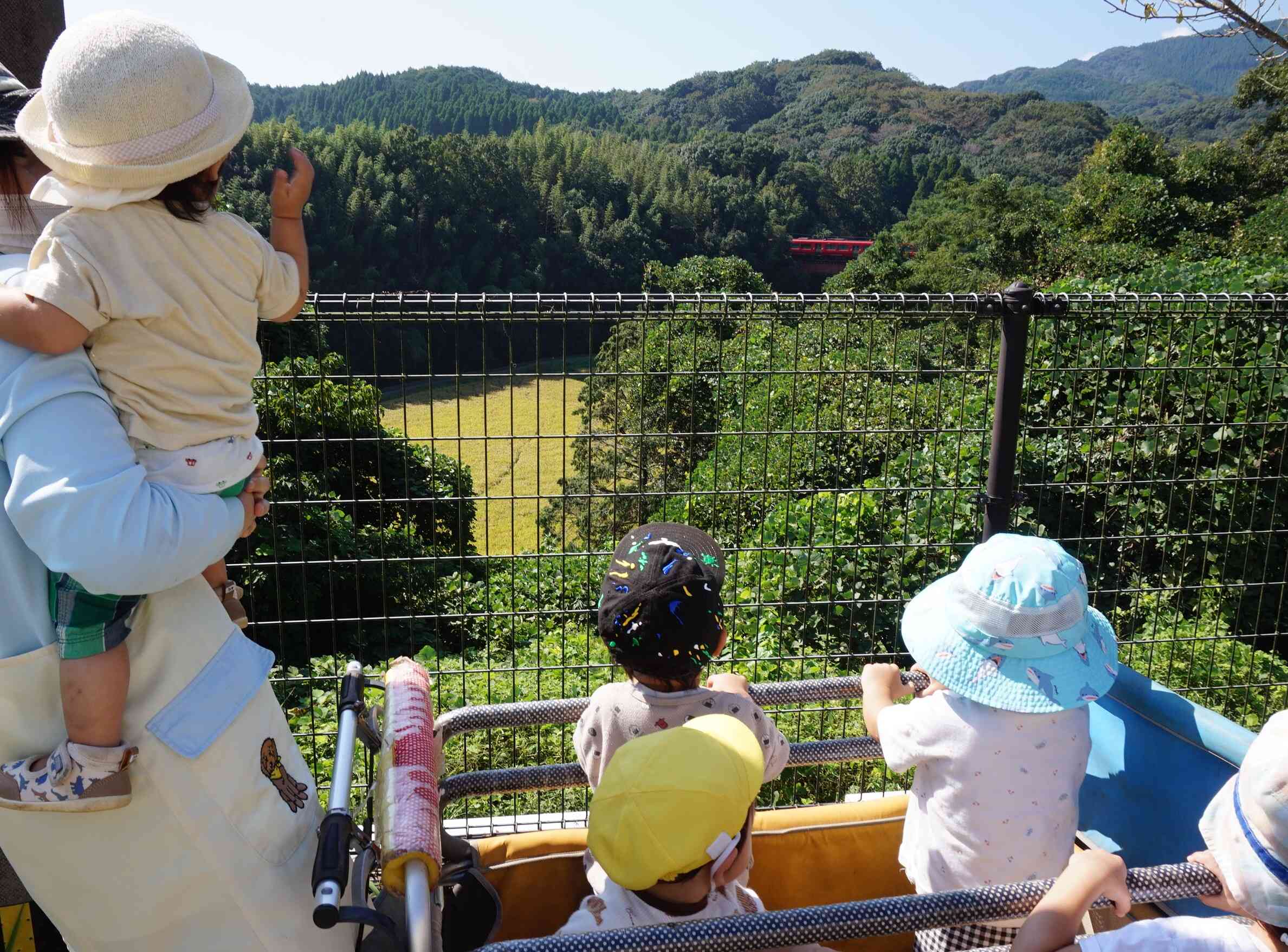山の合間の一瞬通り過ぎる電車を見逃さまいとみんな集中して見ています