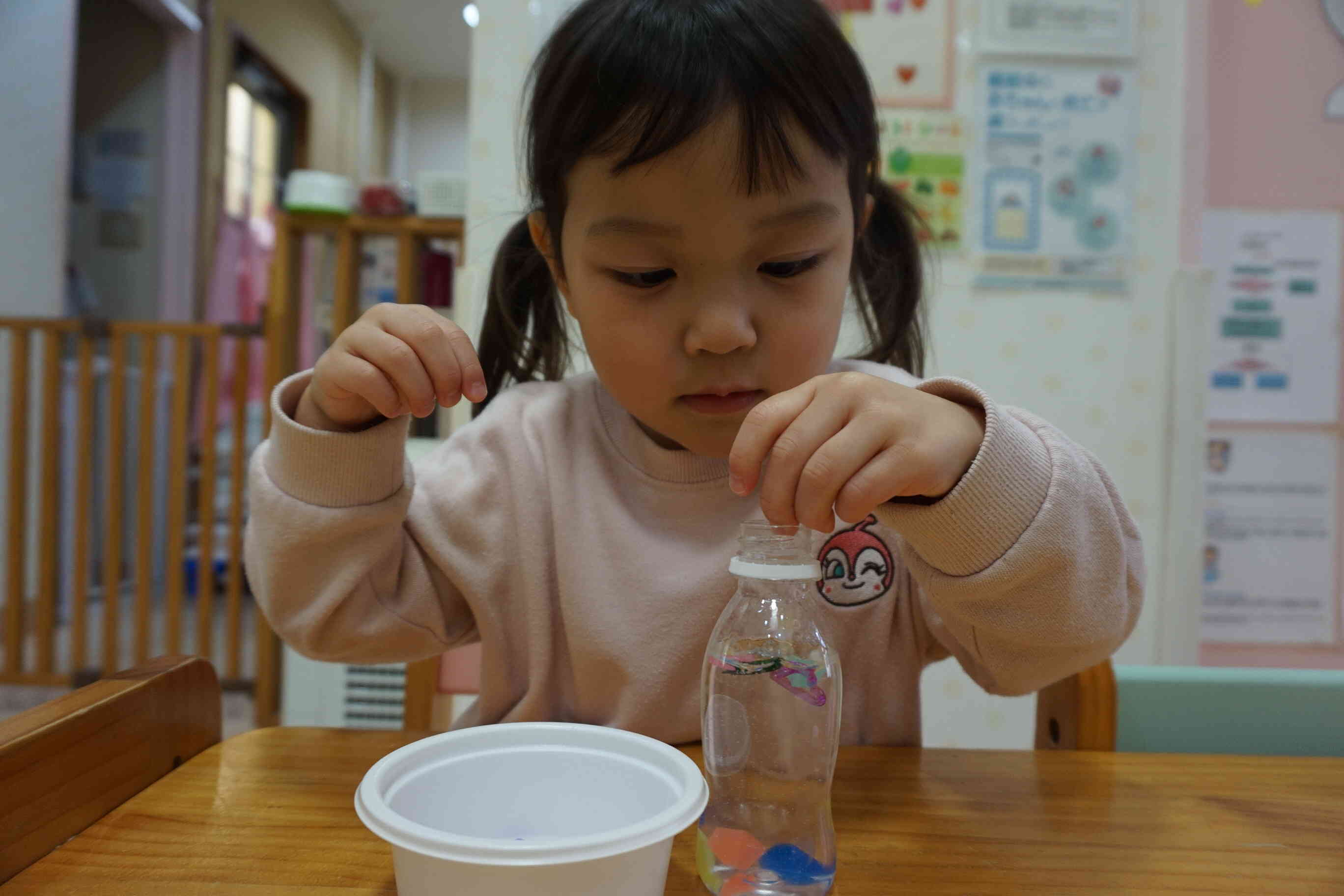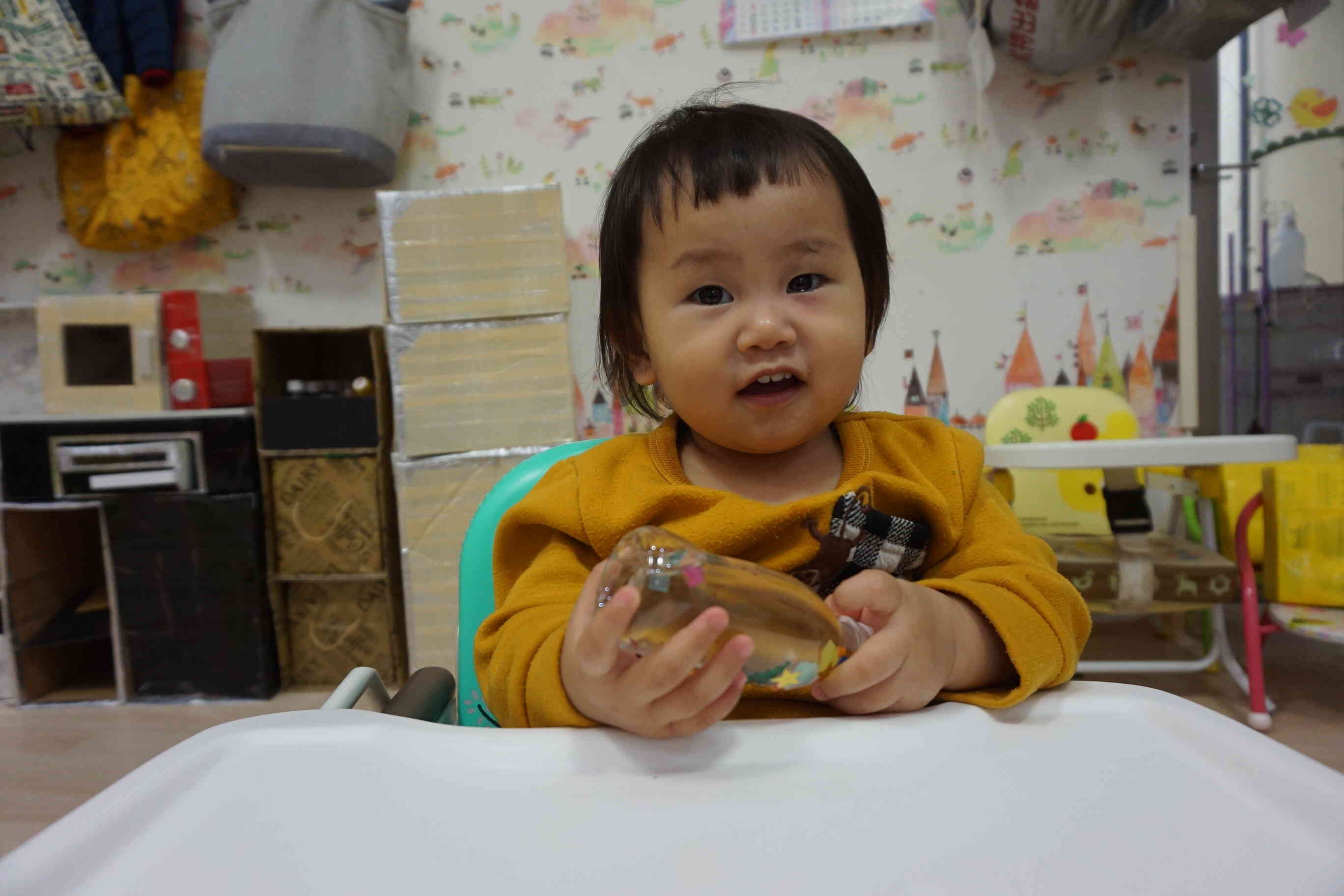 ゆっくり容器の中を行ったり来たりする様子を不思議そうに眺める0歳児さんです♪