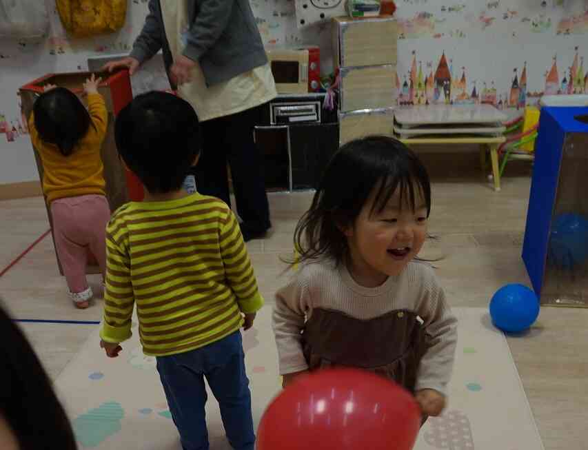 風船を上にぽーんと投げると大喜びの子どもたち☆