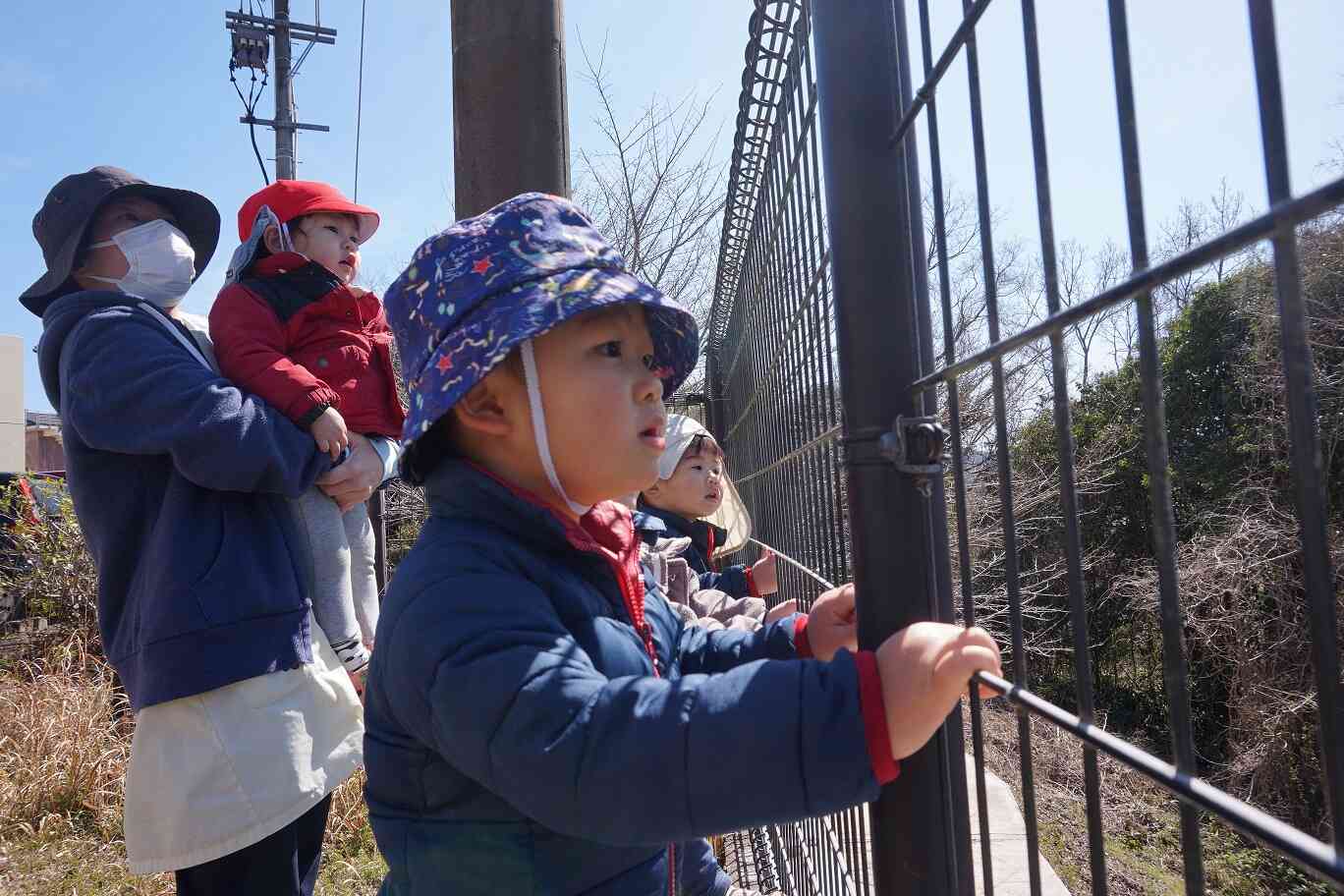 電車が通るのをみんなで並んで待っている姿がかわいいです(^^♪