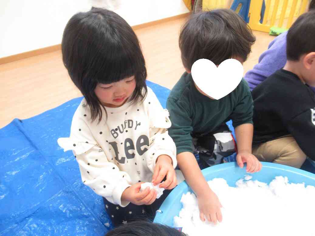 お外には出られないので、お部屋で雪遊びをしましたよ~♪