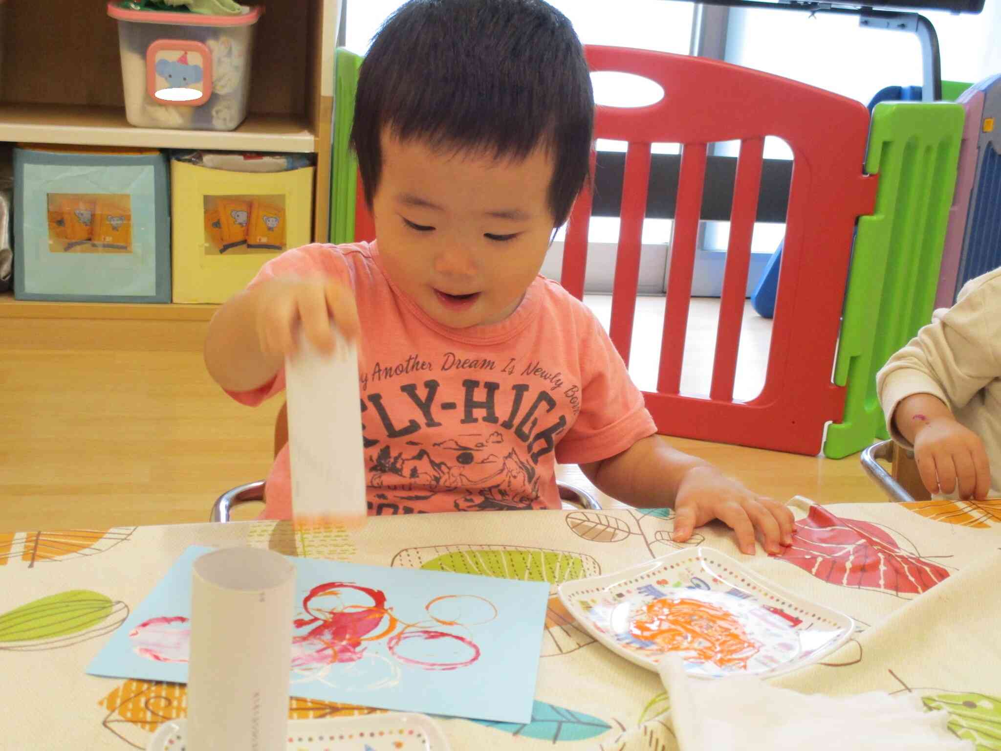 自分で台紙からシールをはがすことに挑戦中!少し苦戦していましたが、頑張りました( *´艸`)