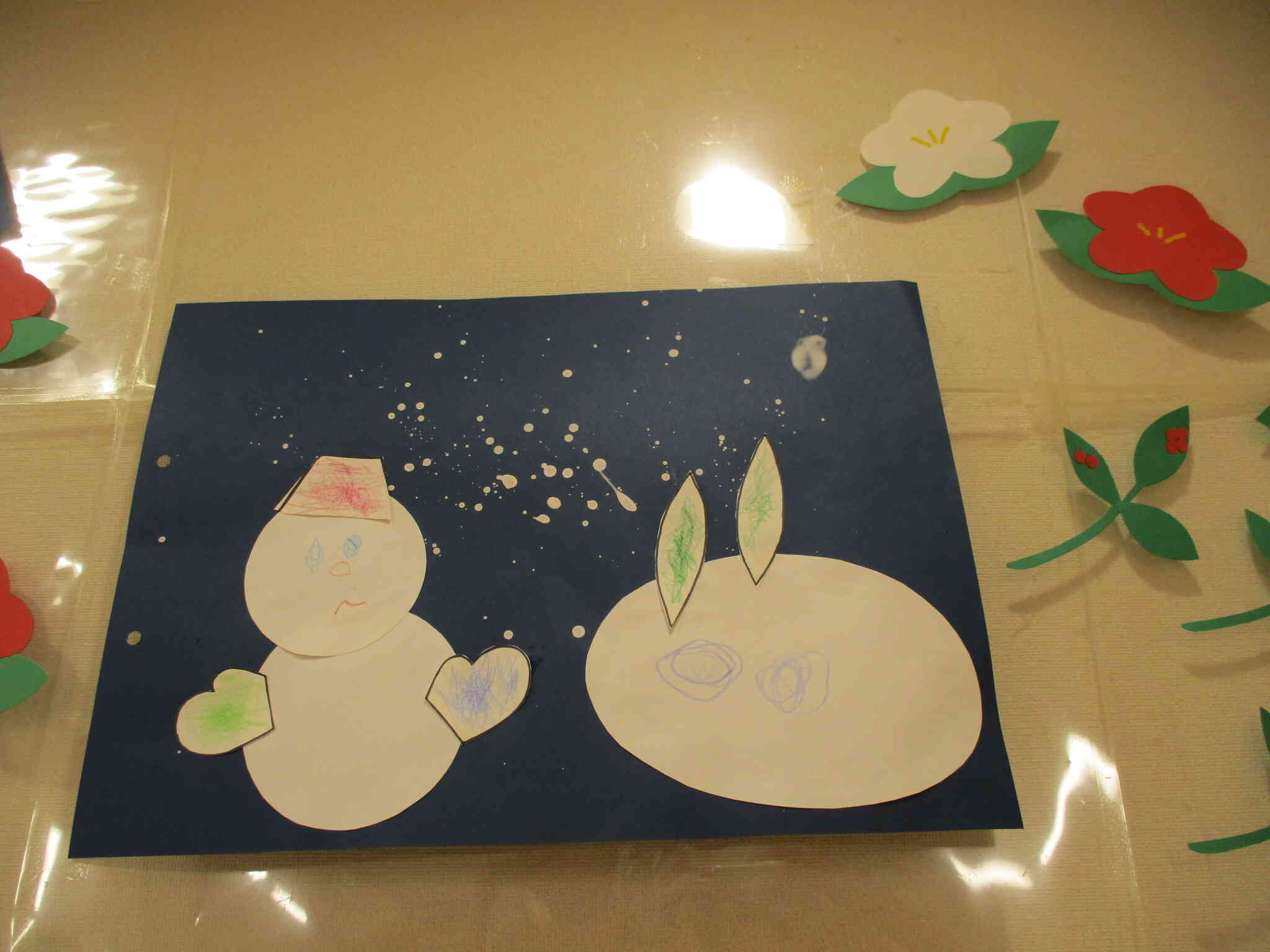 2月のうさぎ組の製作は「雪だるまと雪うさぎ」です。