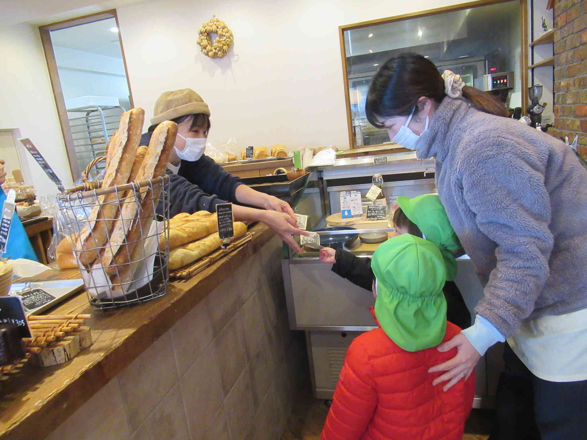 自分たちでジャムサンドを作ってみたいという声がありパン屋さんへおつかいにいきました!