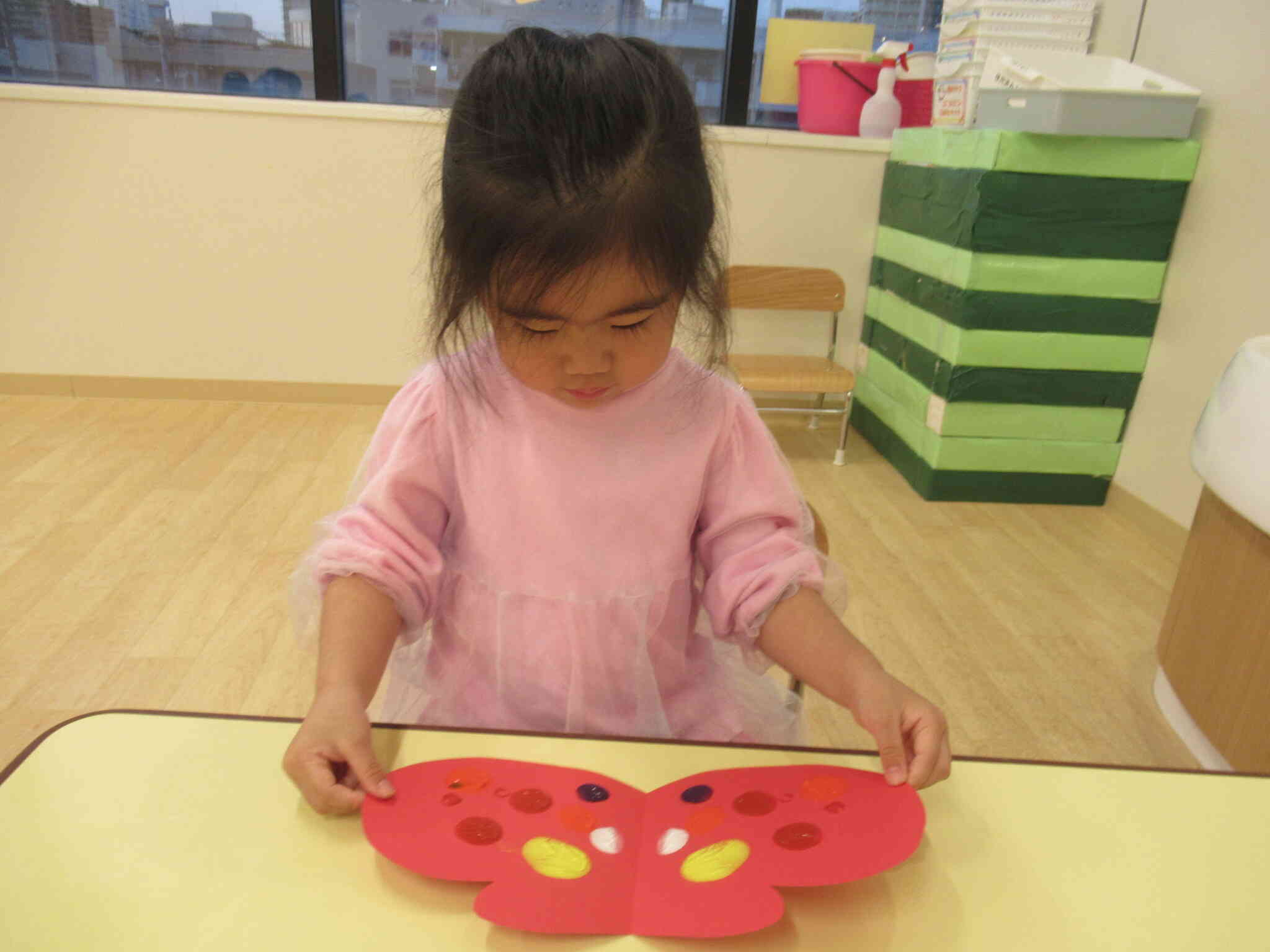 もう片面の画用紙とくっつけて開くと
