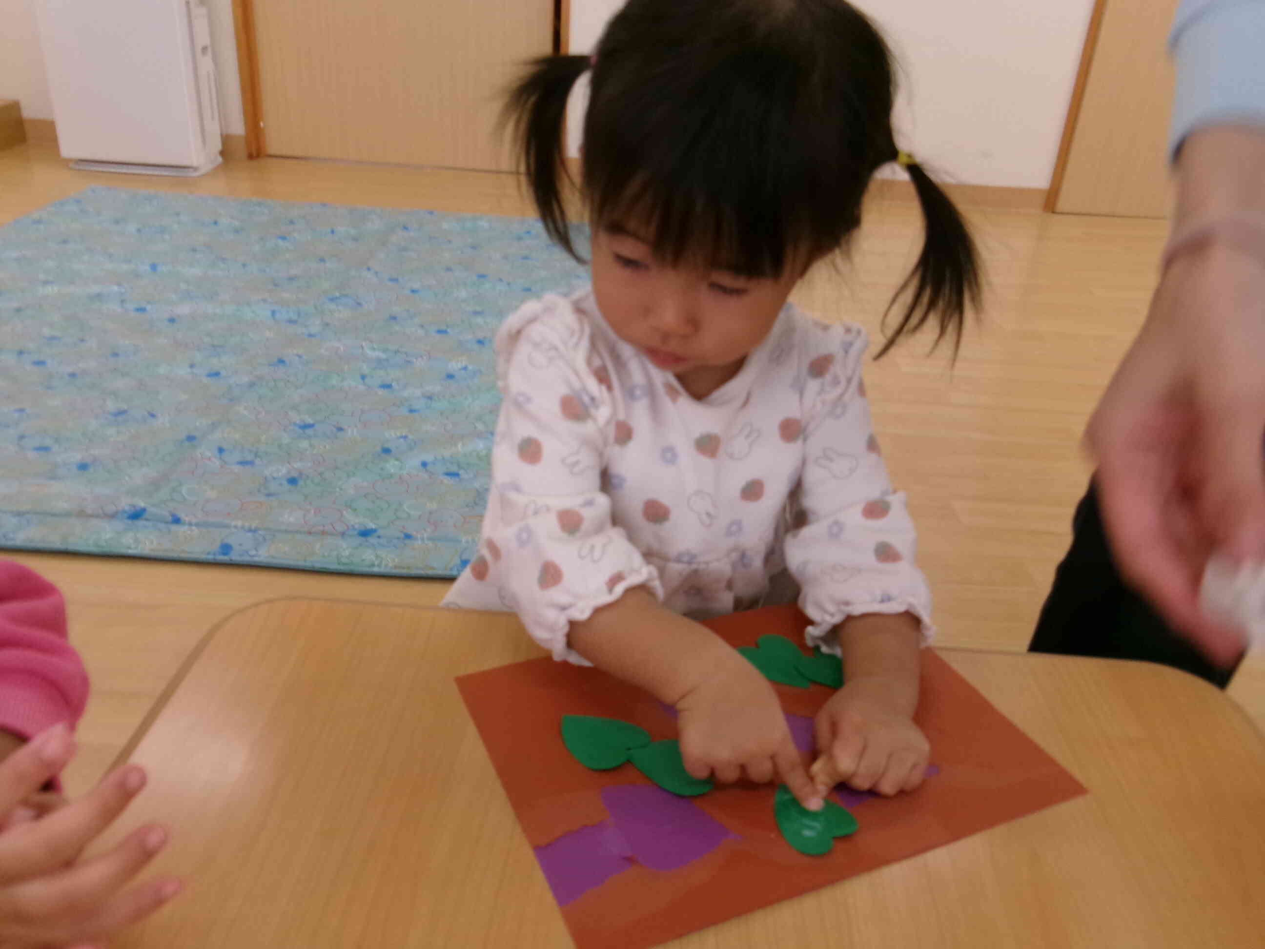 「ハート(の葉っぱ)可愛い!」と、のりを使って貼っていきました。