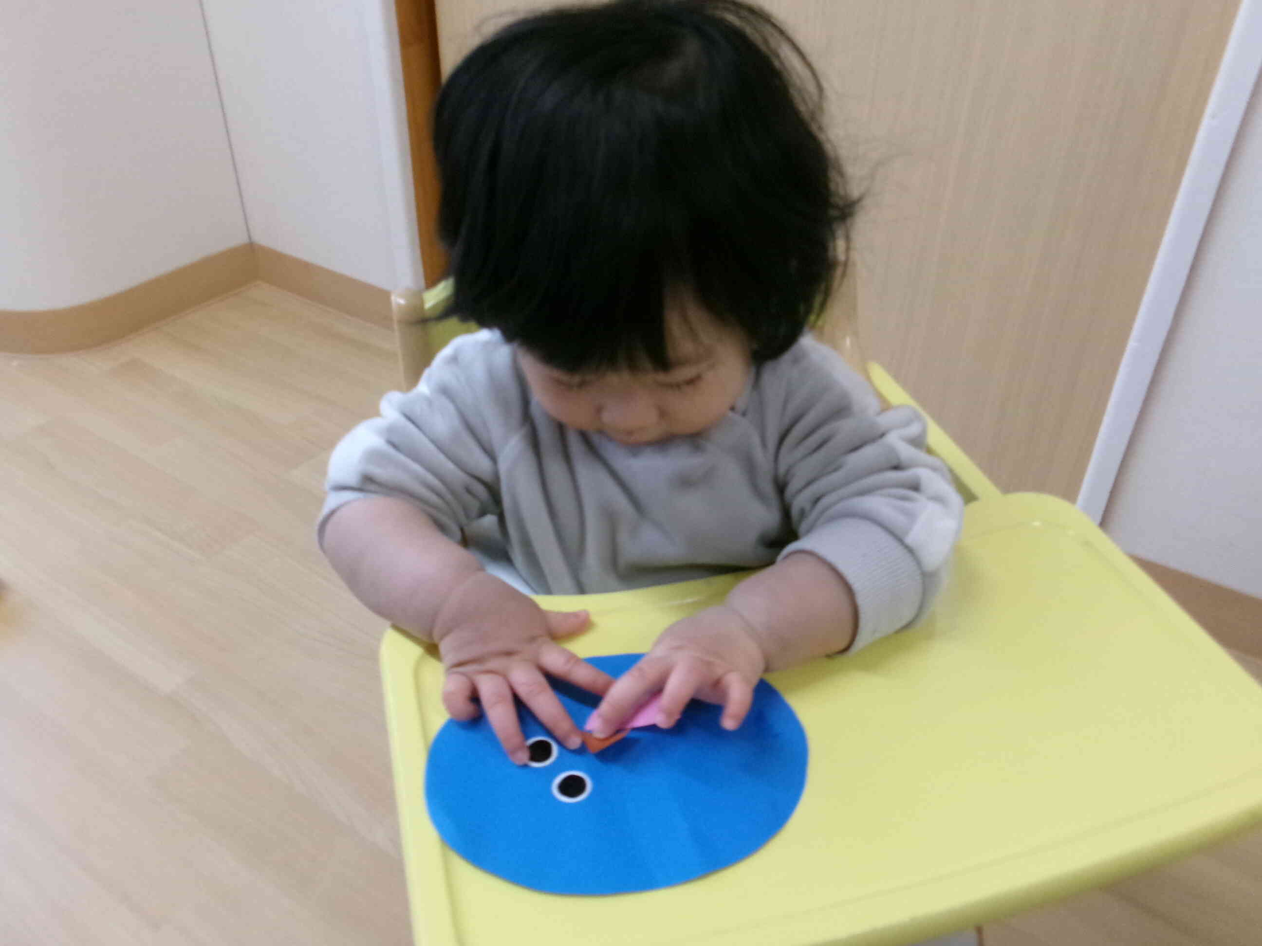 お次は、鼻と口の場所を考えながら貼ってくれているお友だちです。