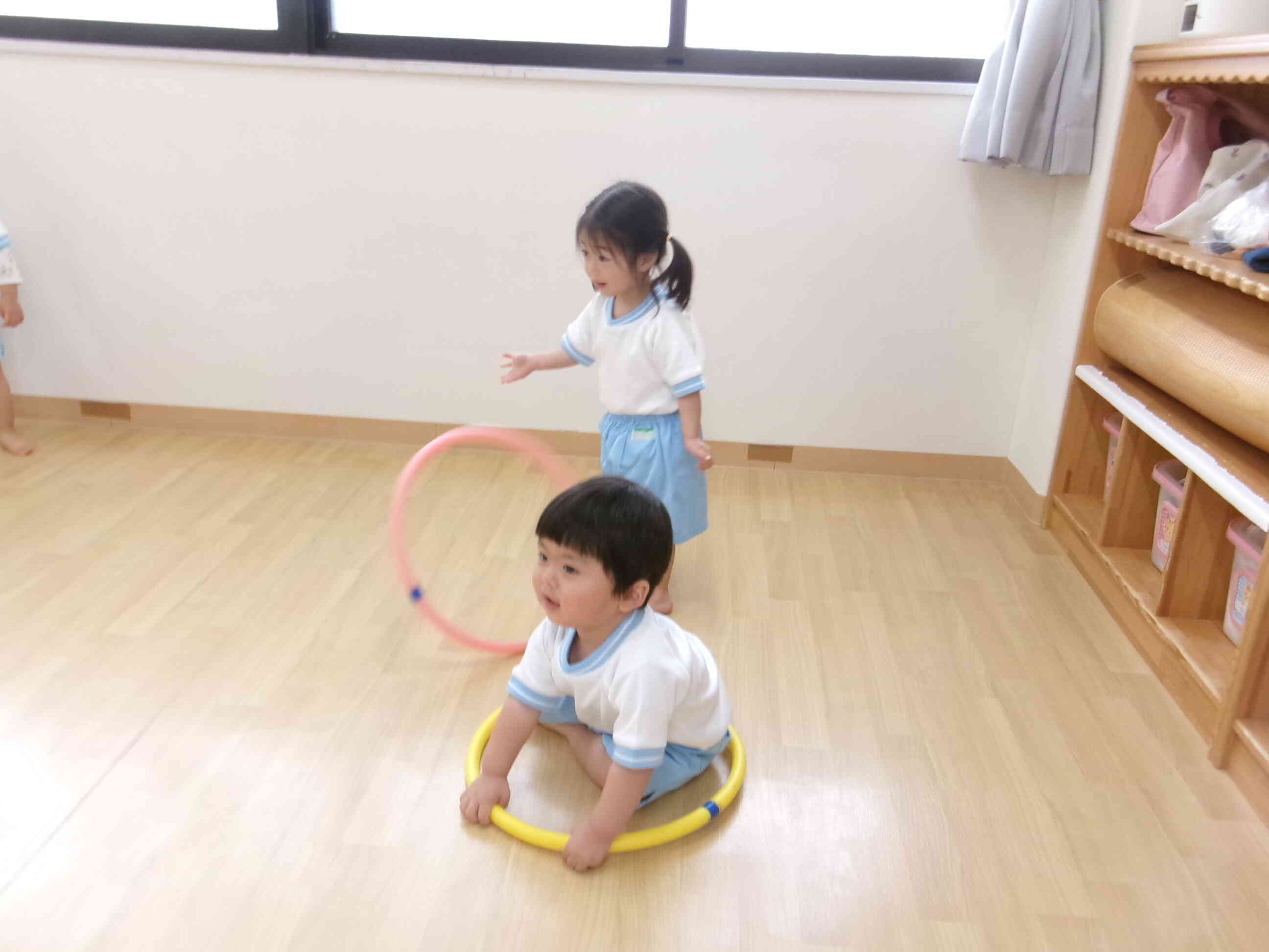 回して、フープが床についたら、フープの中に「ピョン!」と入ります。