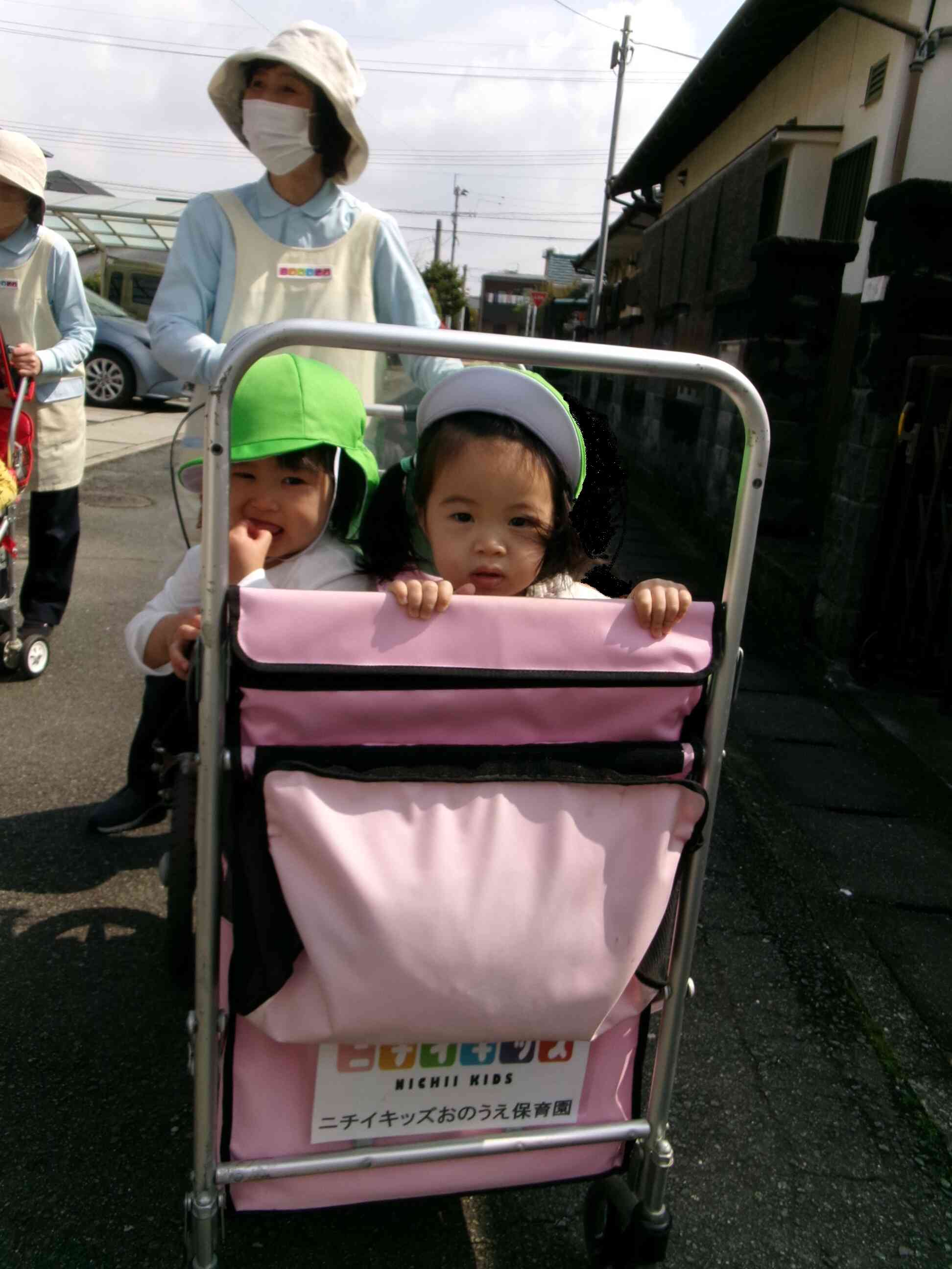 新しく入園した0歳児のお友だちも一緒にお散歩しましたよ。