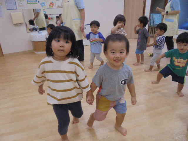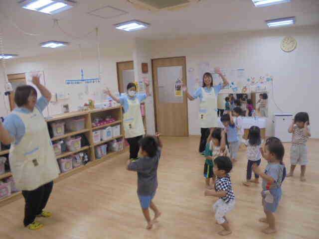 絵本を読んだり、ダンスをしたりと雨の日特別プラン!ひよこ組さんもいつもと違う雰囲気を感じている様で「あー」「うー」と大きな声をはっしてニコニコ笑顔を見せてくれました。