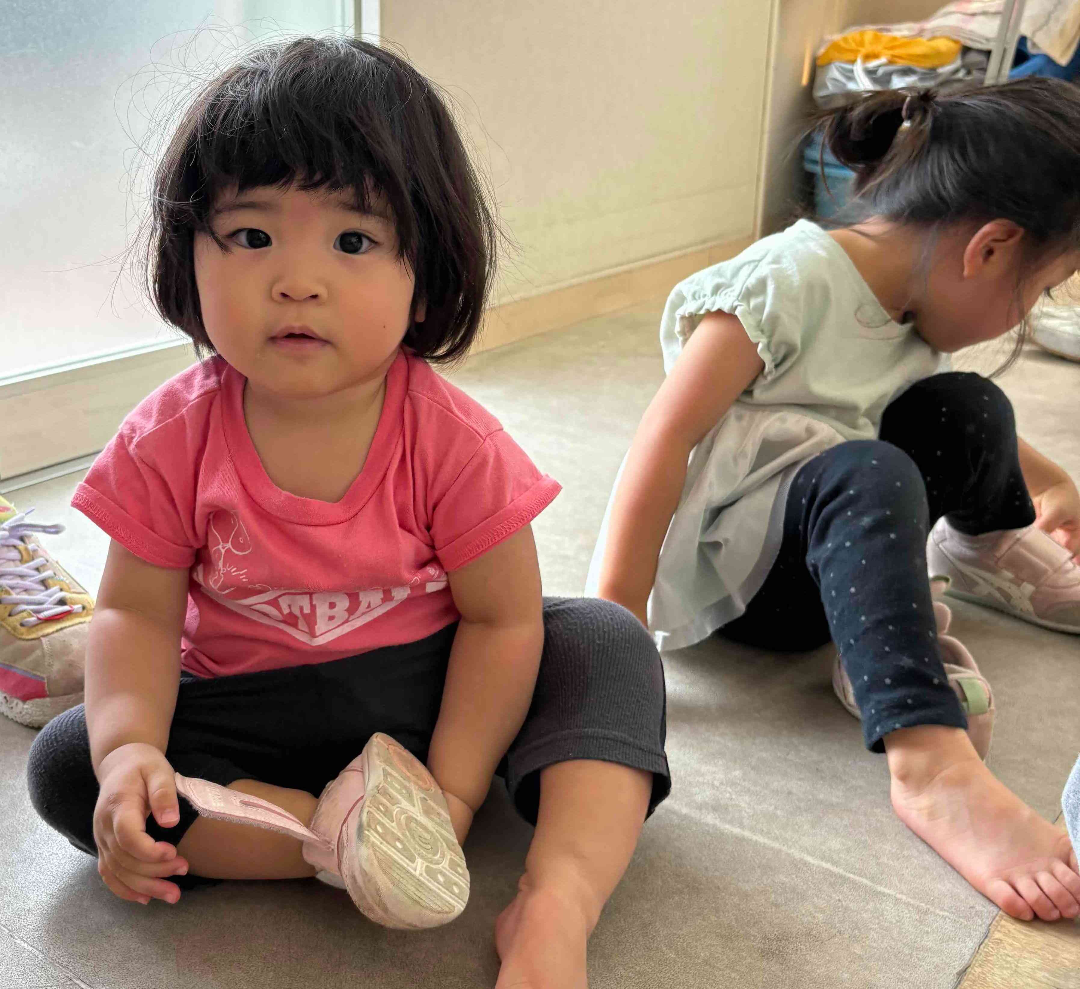 今までは保育士が手伝っていましたが、今日は一人で最後まで履けました。指先の力がついてきたのを感じます。『自分でする!』と意欲的で、最後まで諦めずに履き終えると、パッと笑顔を見せてくれました。