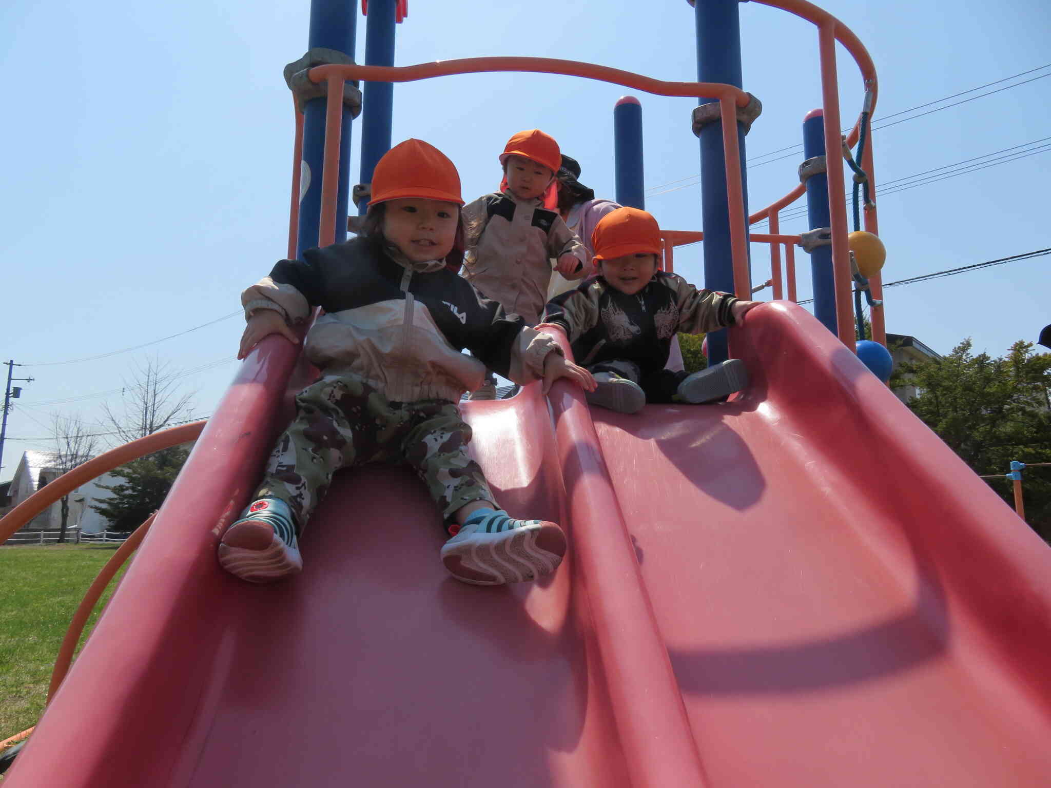 スズランテープで遊びました‼シュッと飛ばして「すごいでしょ?」と、このお顔。
