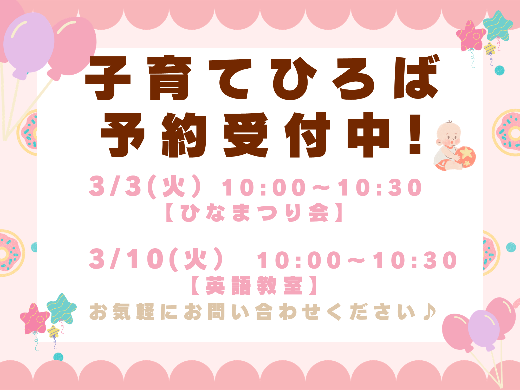 お子様や保護者の方に楽しんでいただけるイベントを開催しています。