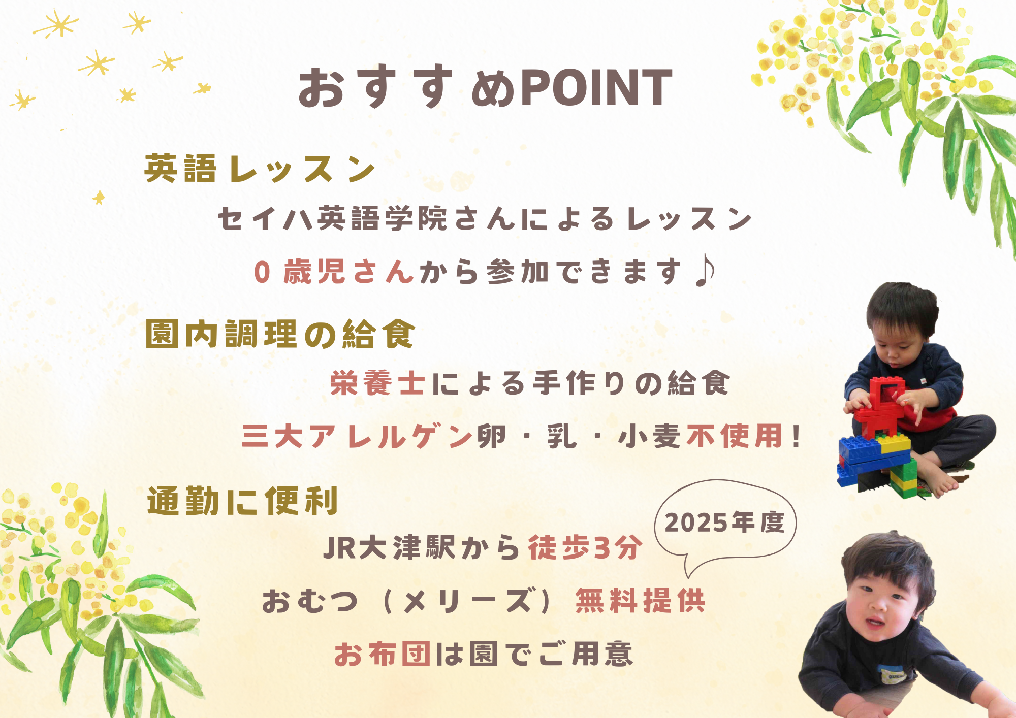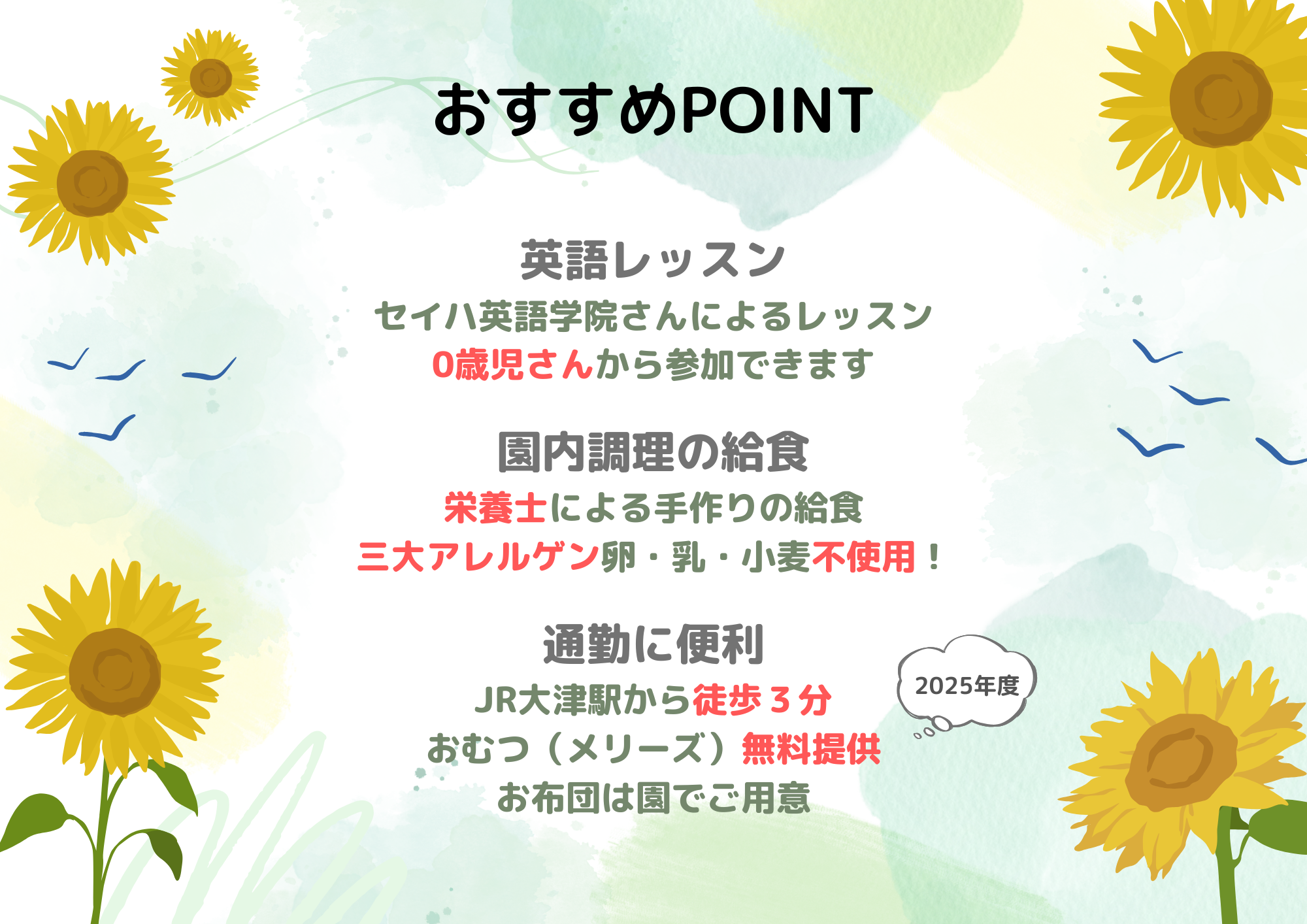 WEBでの来年度の受付を開始しています。来年度は、おむつ・エプロンなどが無料!また、12月31日までに専願で入園の申し込みをされますと保育料の割引などの特典もございます。一度園見学に来てください。お待ちしています。。