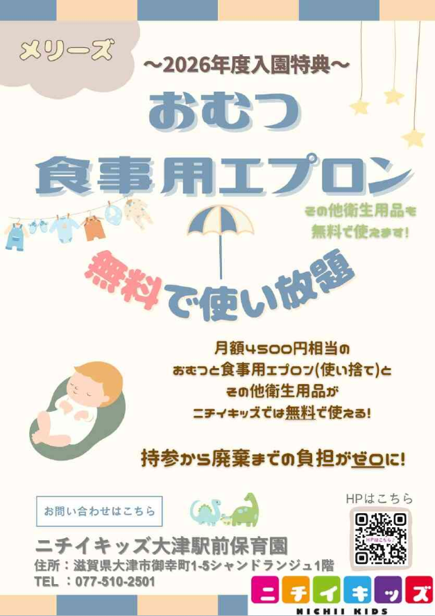 2026年度入園・継続特典! おむつ等の無償提供を継続+拡大します!