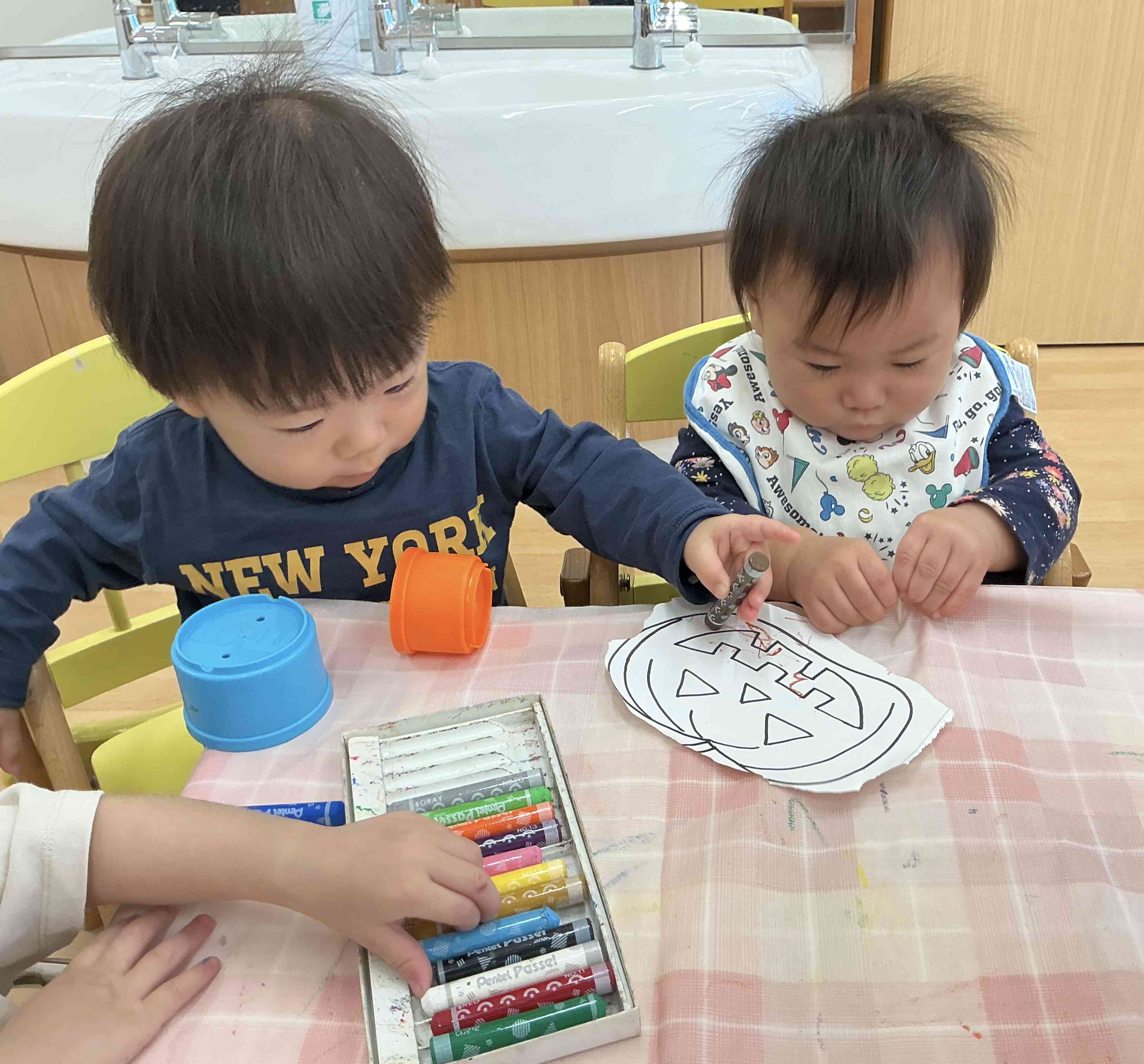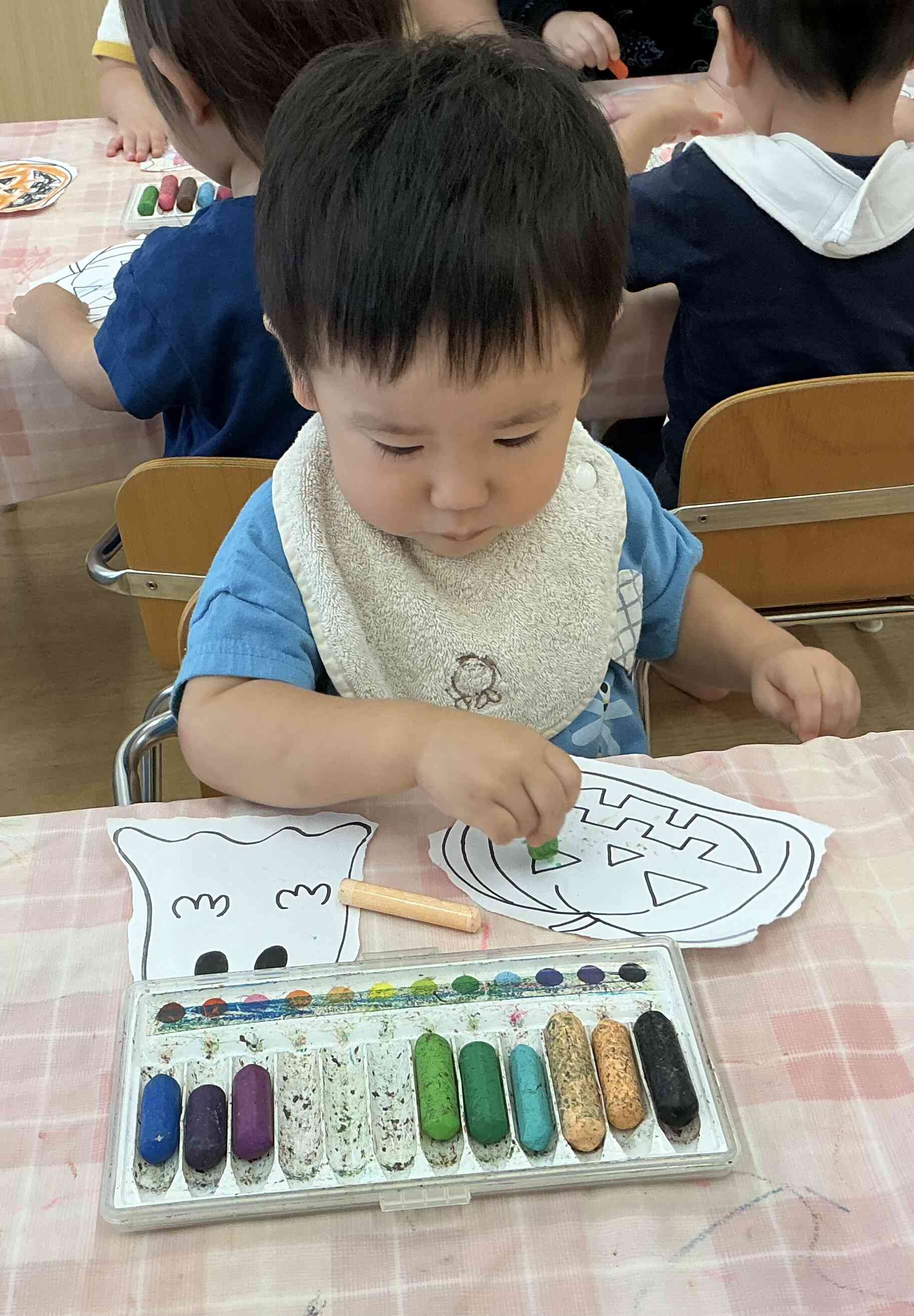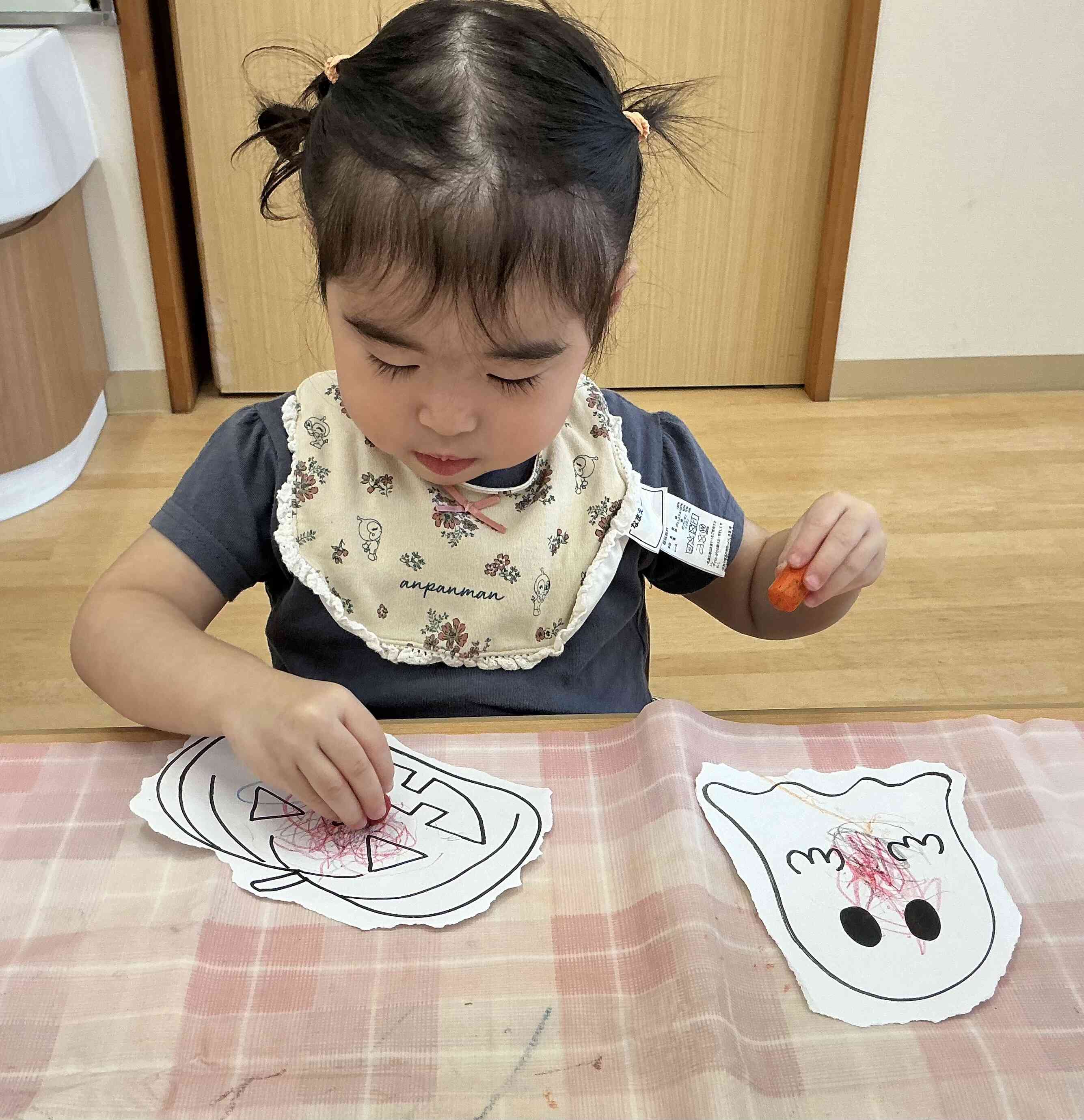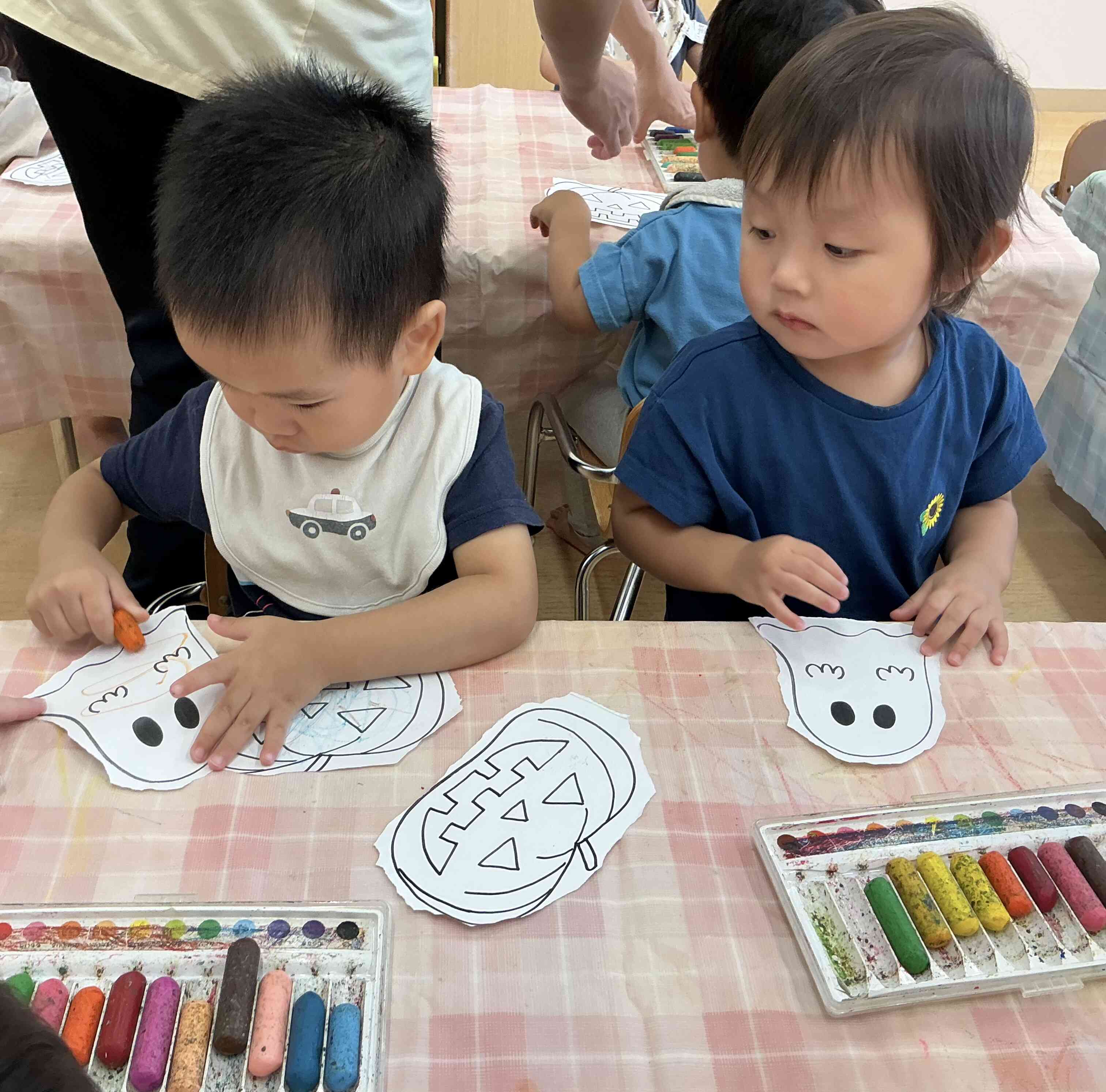 「おばけ」「かぼちゃ」の塗り絵をしました。
