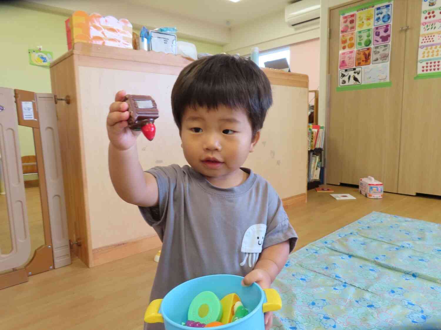 この日はうさぎ組さんの利用が多く、とってもにぎやか。公園に出かける前も、みんなで楽しく遊んでいました。