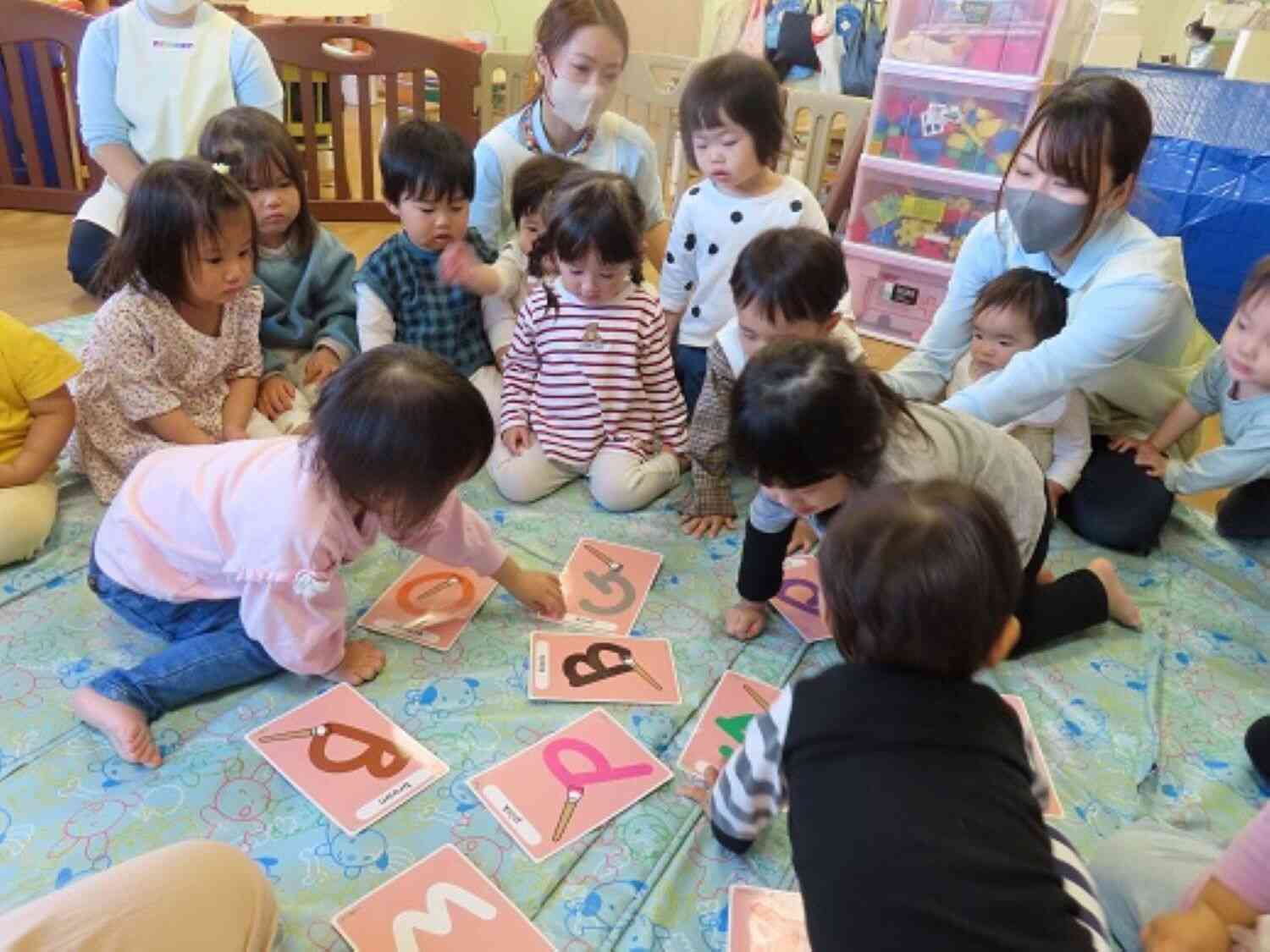 今度は動物のイラストが描かれたカードがマットの上にたくさん並べられました。