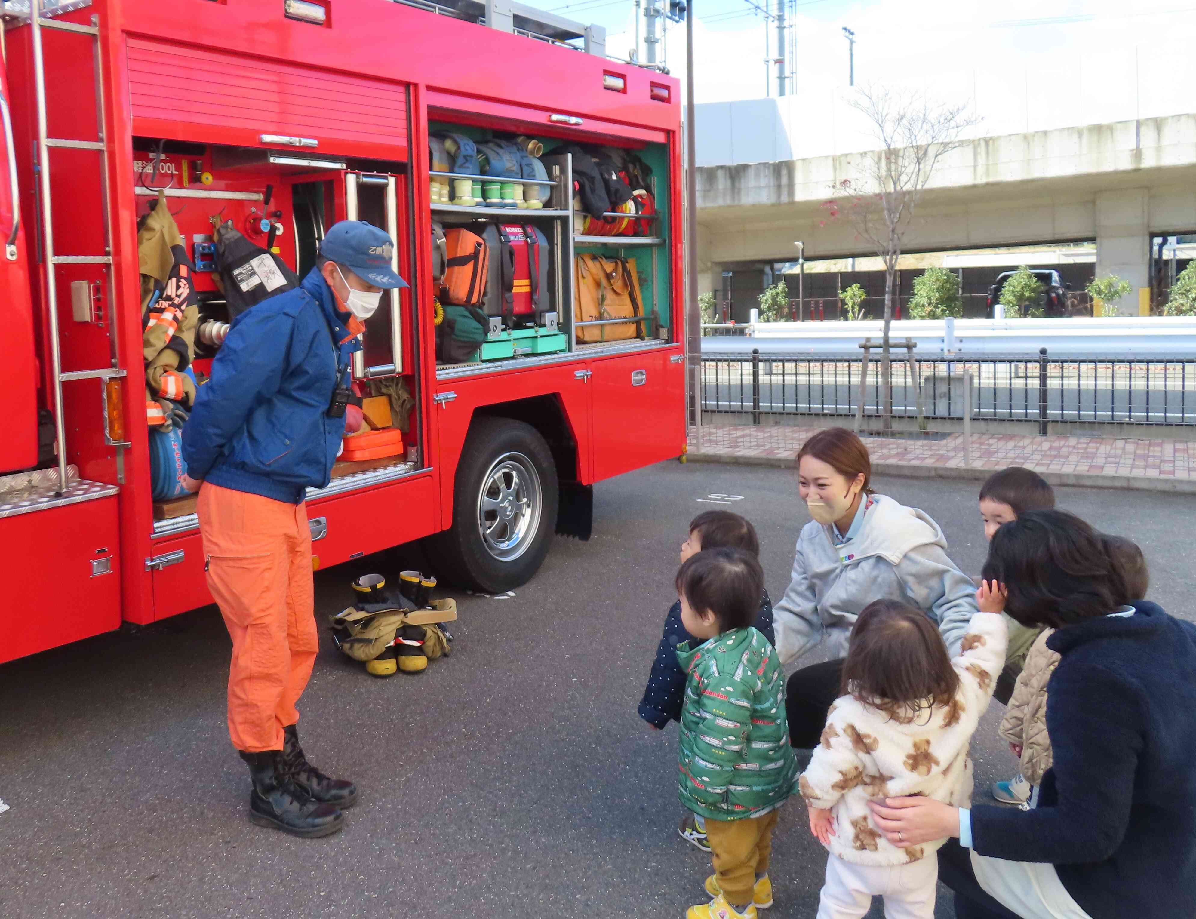 「すご~い」と喜ぶ子・びっくりして泣いちゃう子もいましたが、消防士さんのおはなしをしっかりと聞いていました。