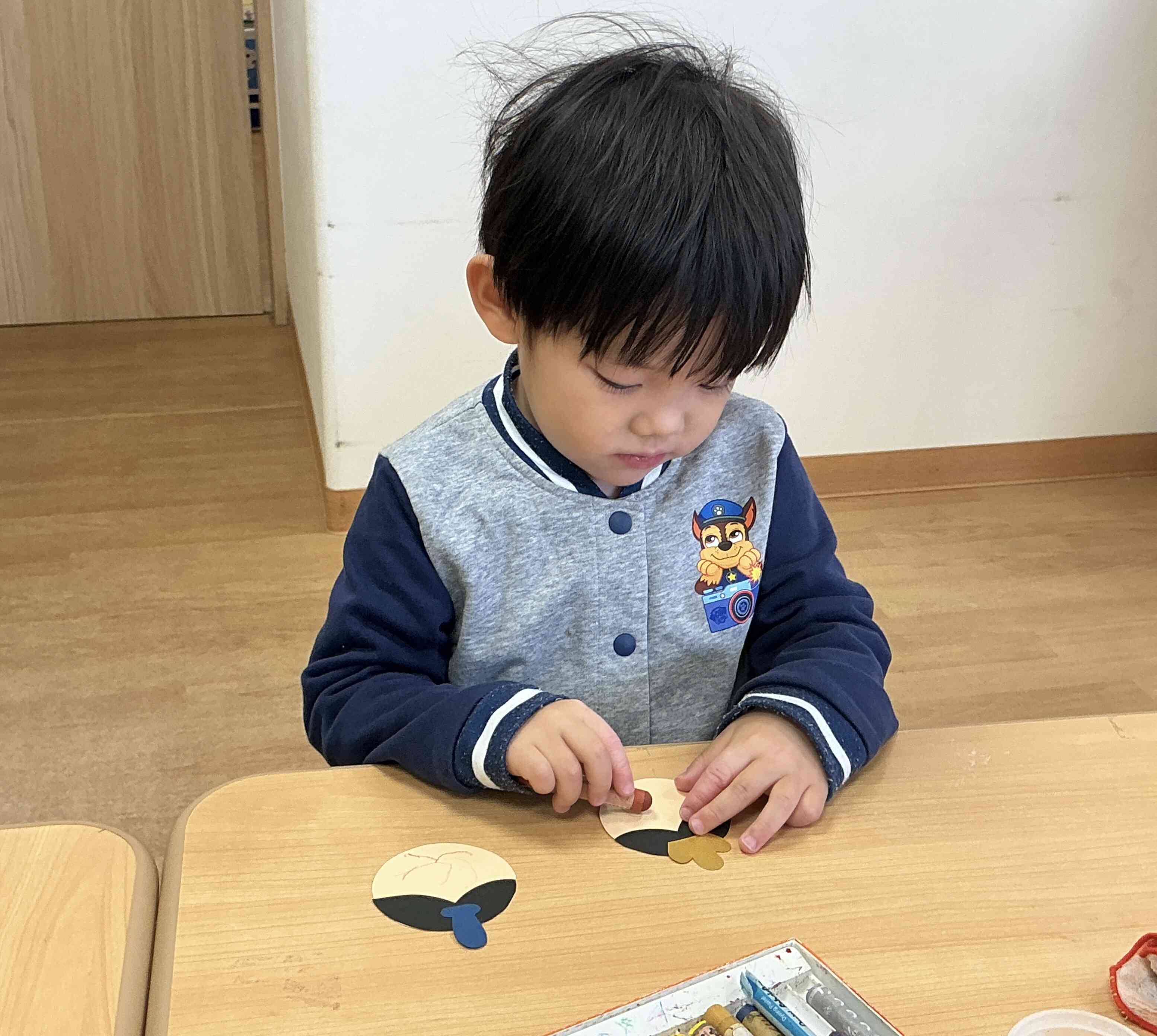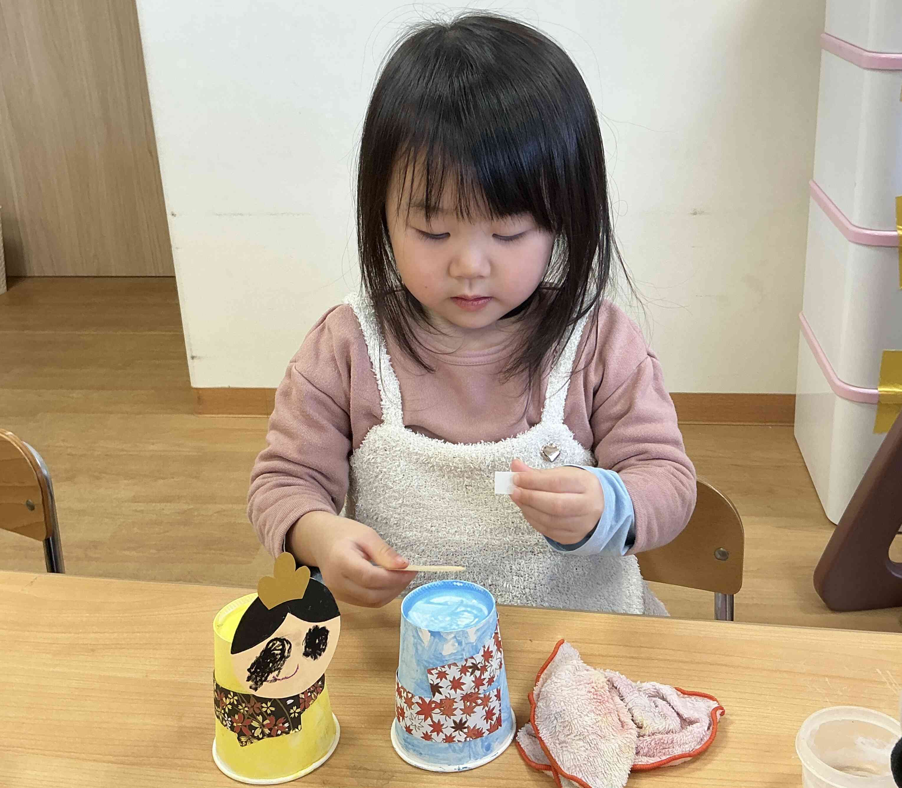 うさぎ組は紙コップを着物に見立てて絵の具で色付けをしました。