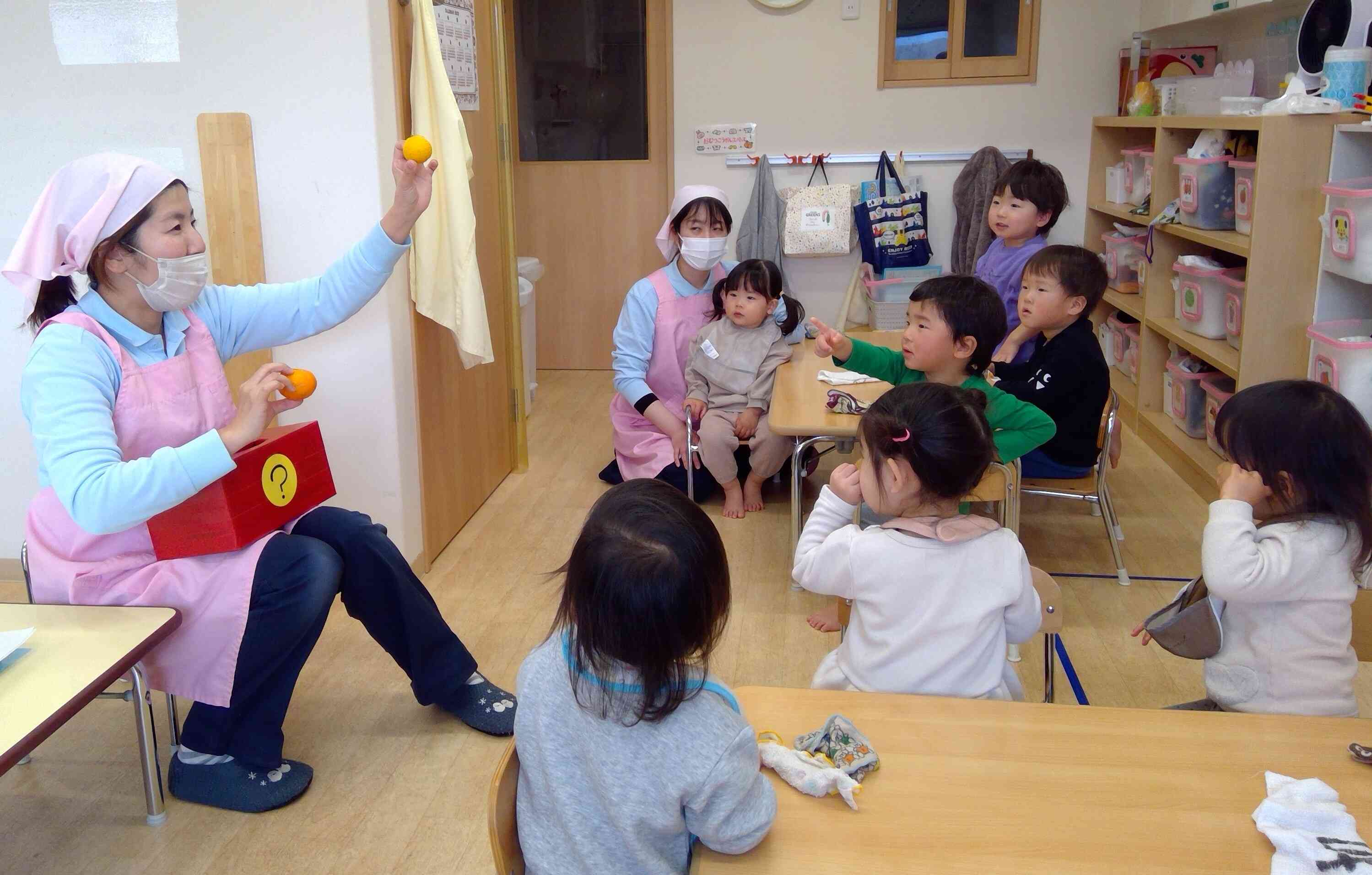 みかんのお友だち!ってたくさんいるんだよ~とハテナBOXの中からいよかん・はっさく・ゆずも登場!!