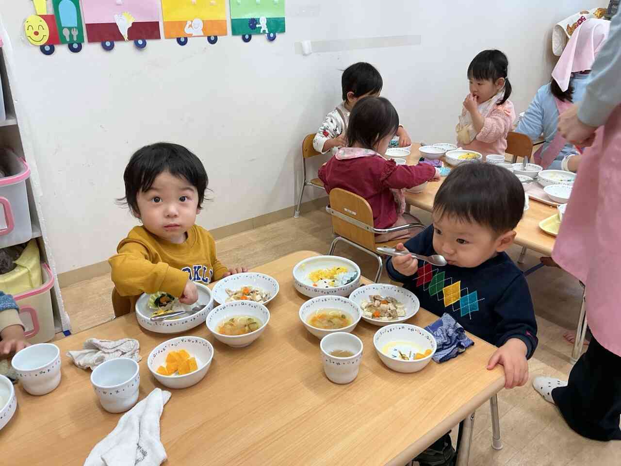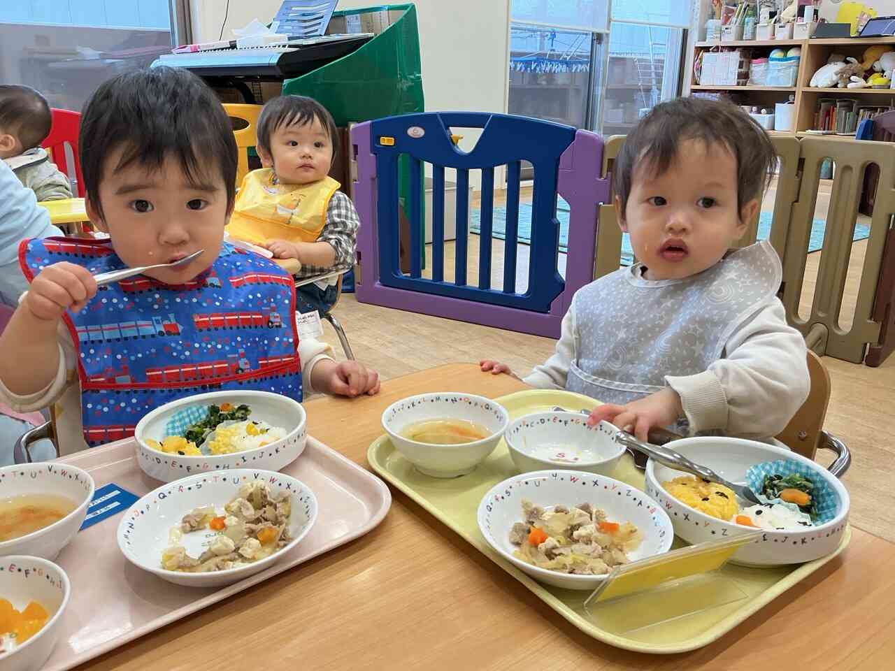 ひよこ組さんもスプーンで上手に食べています。