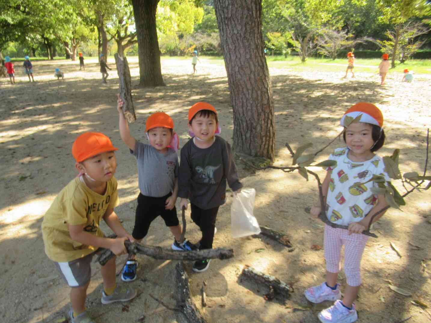 「うわぁー!どんぐりあったー!」保育者も子どもたちと大喜び!