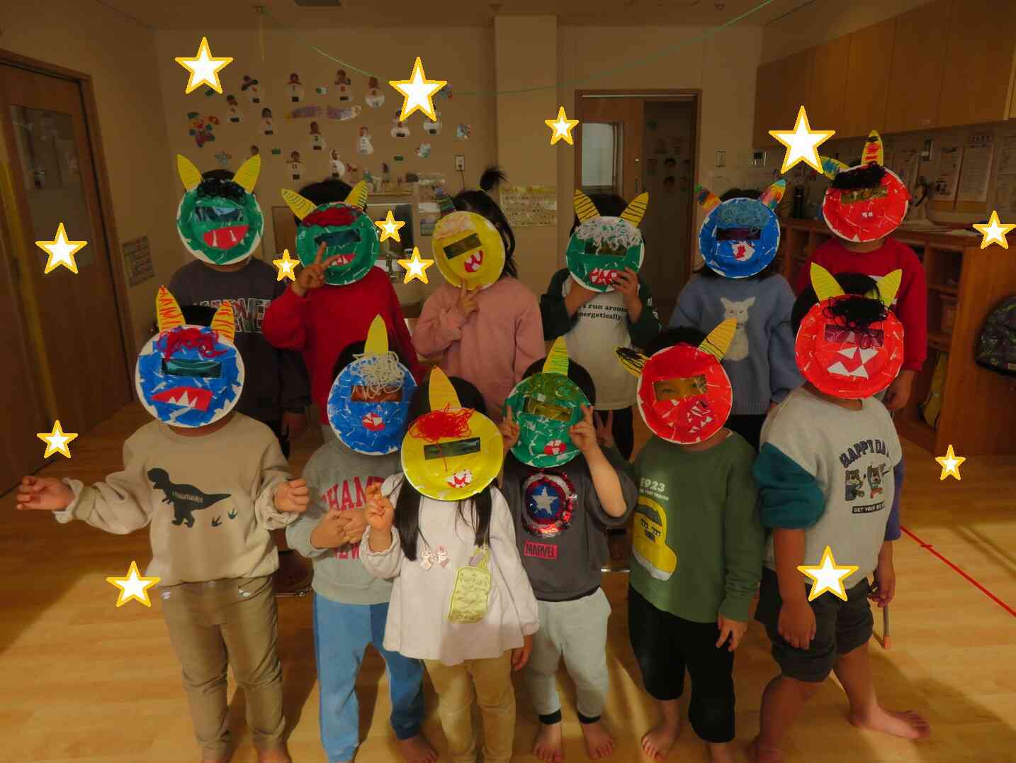 子どもたちそれぞれが、心のなかに住む鬼を追い払いました!