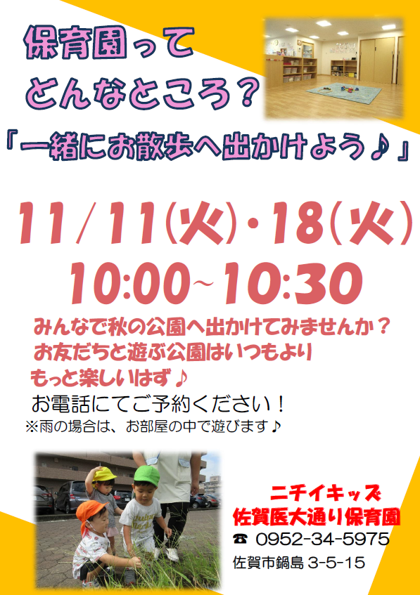 保育園のお友だちと一緒にお散歩に出かけ、みんなで楽しく