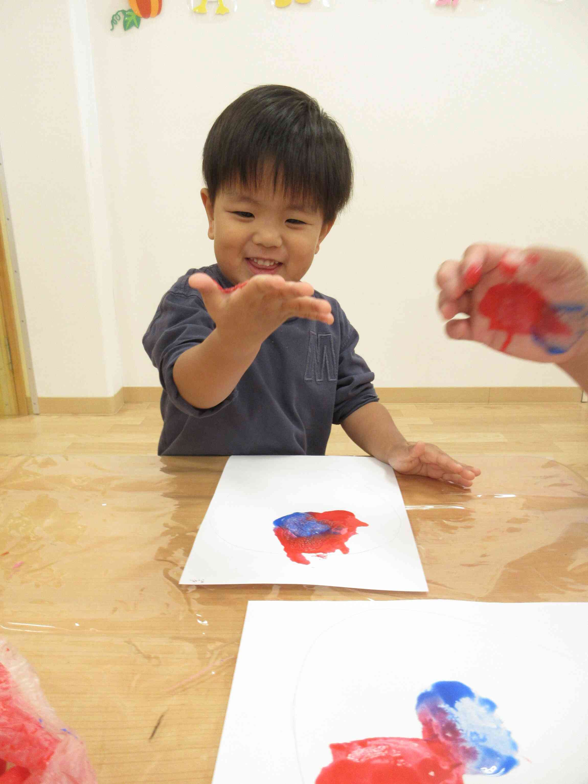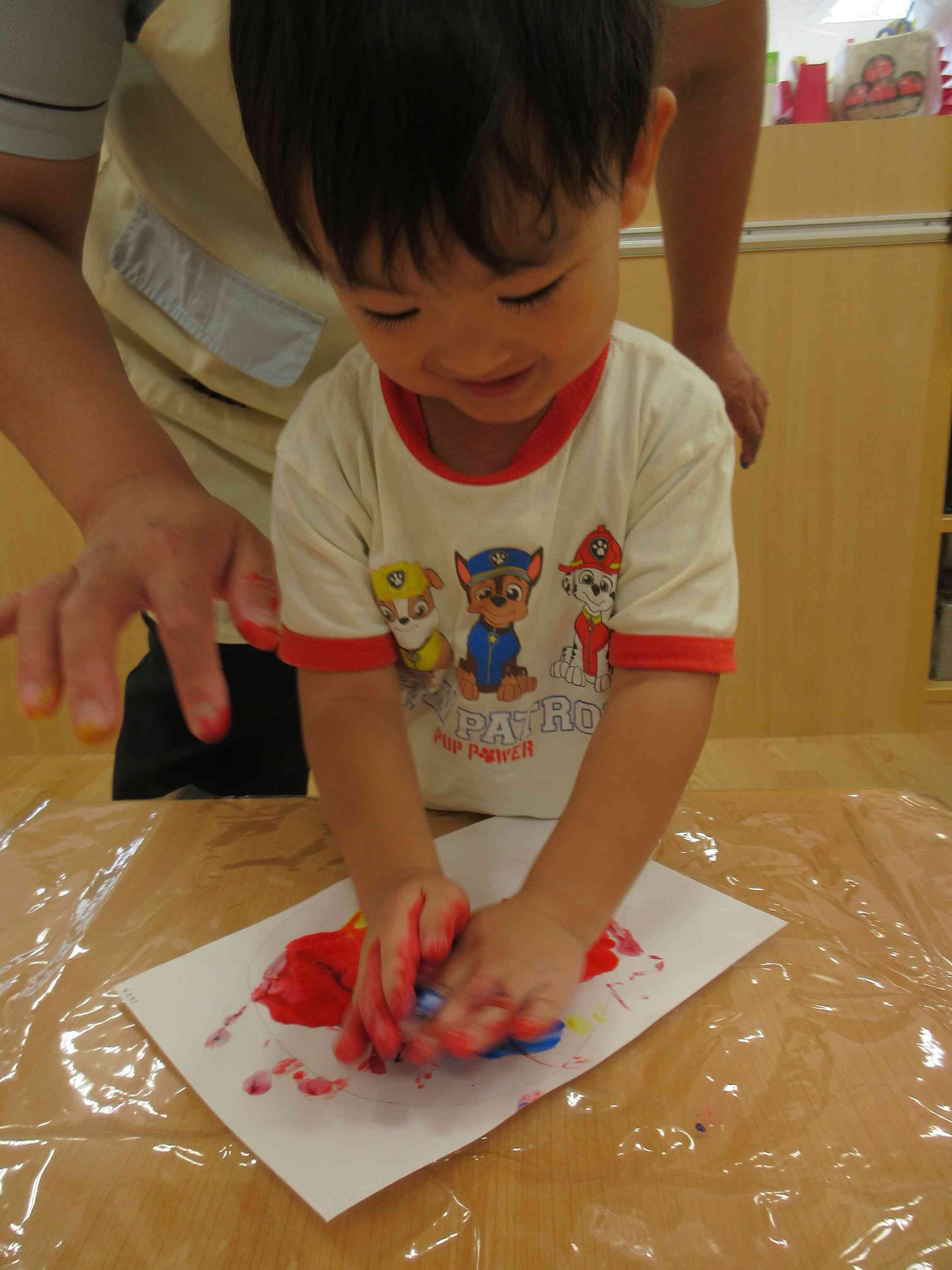 手寧付いた絵の具にちょっぴりドキドキ・・・