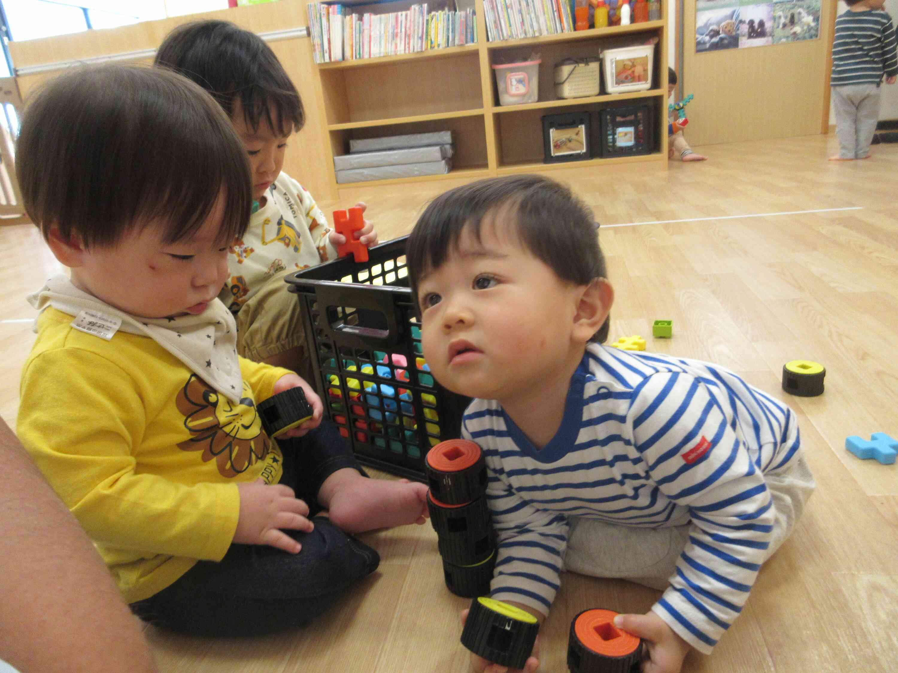 先生が作っているブロックを興味津々で見ていましたよ♪