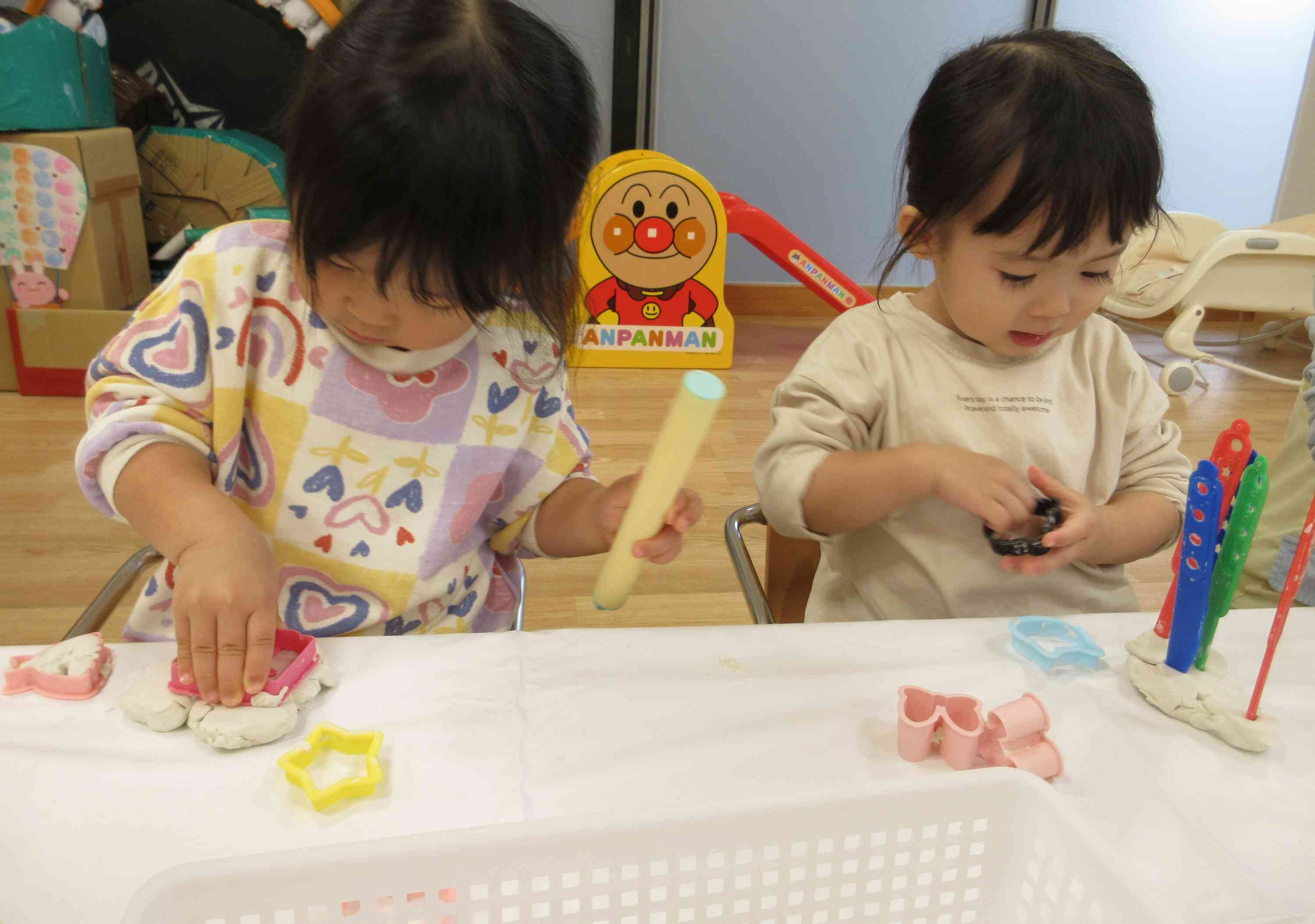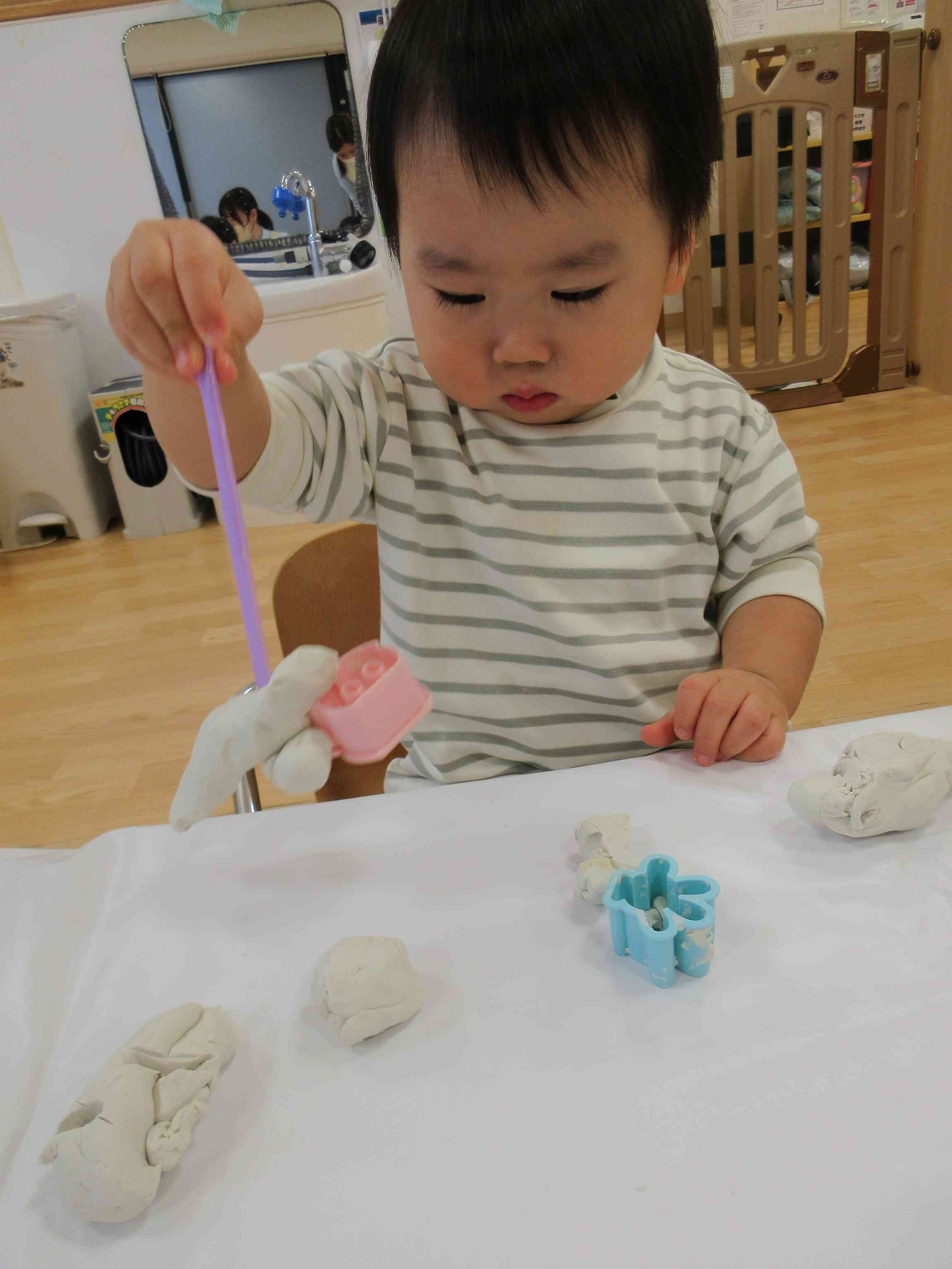 今日はお部屋の中で粘土遊びをしました♪