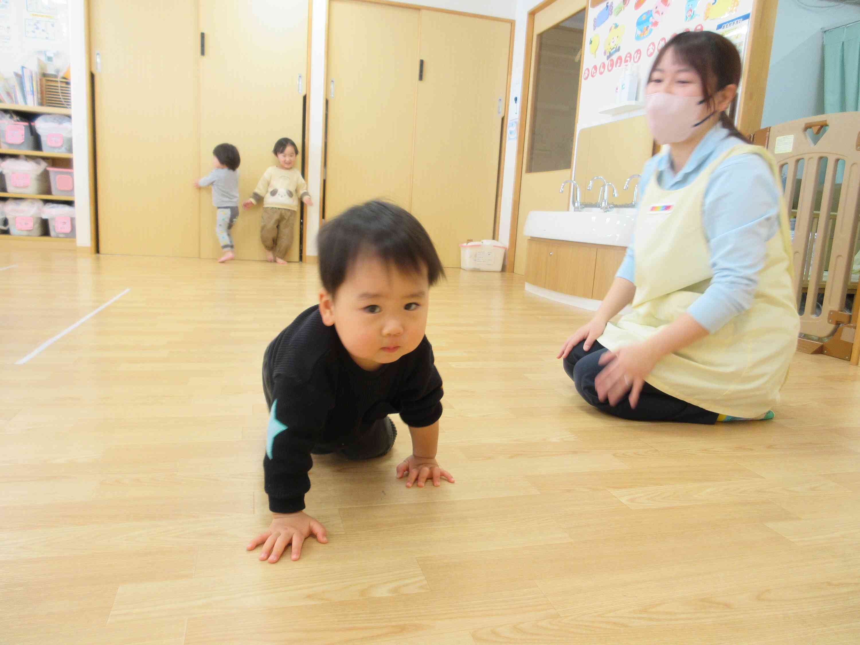 待て待て~~とお友だちみんなでハイハイをしました♪