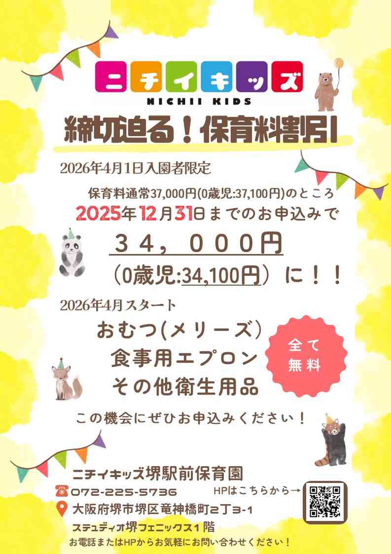 締切迫る!!~2025年12月31日までの入園申込・継続特典と無償提供サービスのご案内~