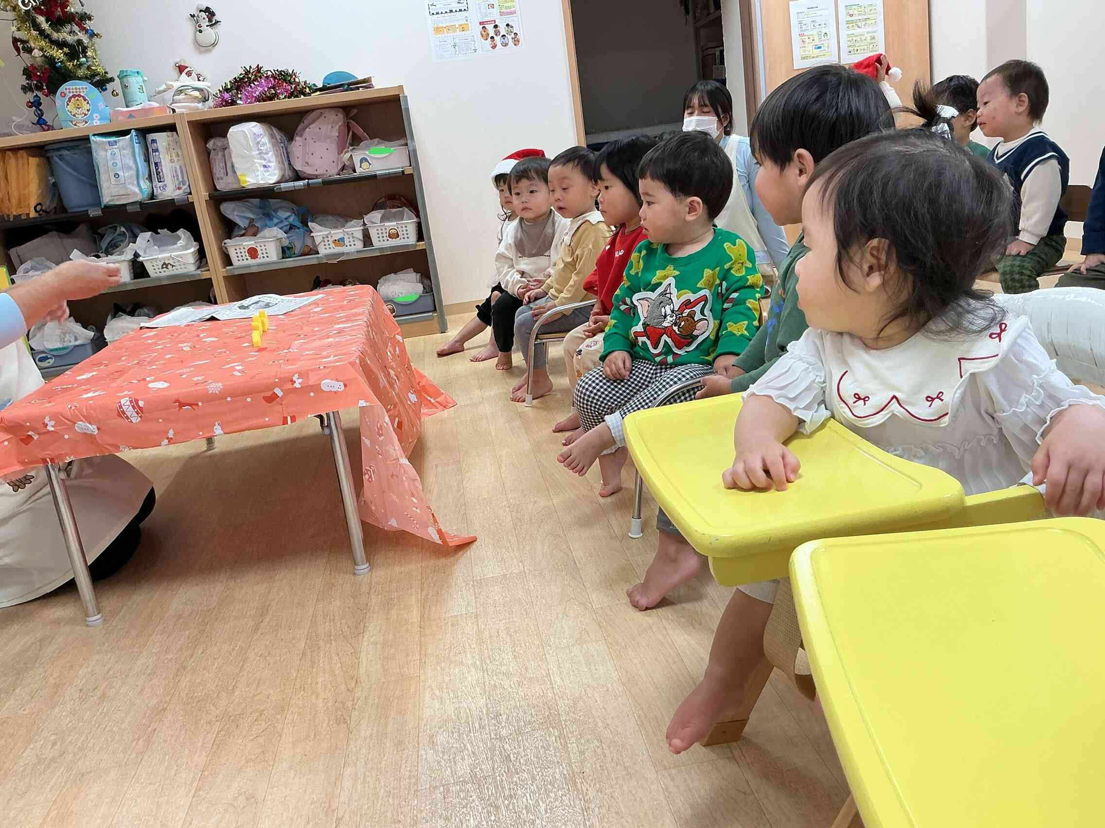 今日はみんなが待ちに待ったクリスマス会をしました!先生の出し物たくさん見れて楽しかったね⭐︎サンタさんもきてくれて盛り上がりましたよ!