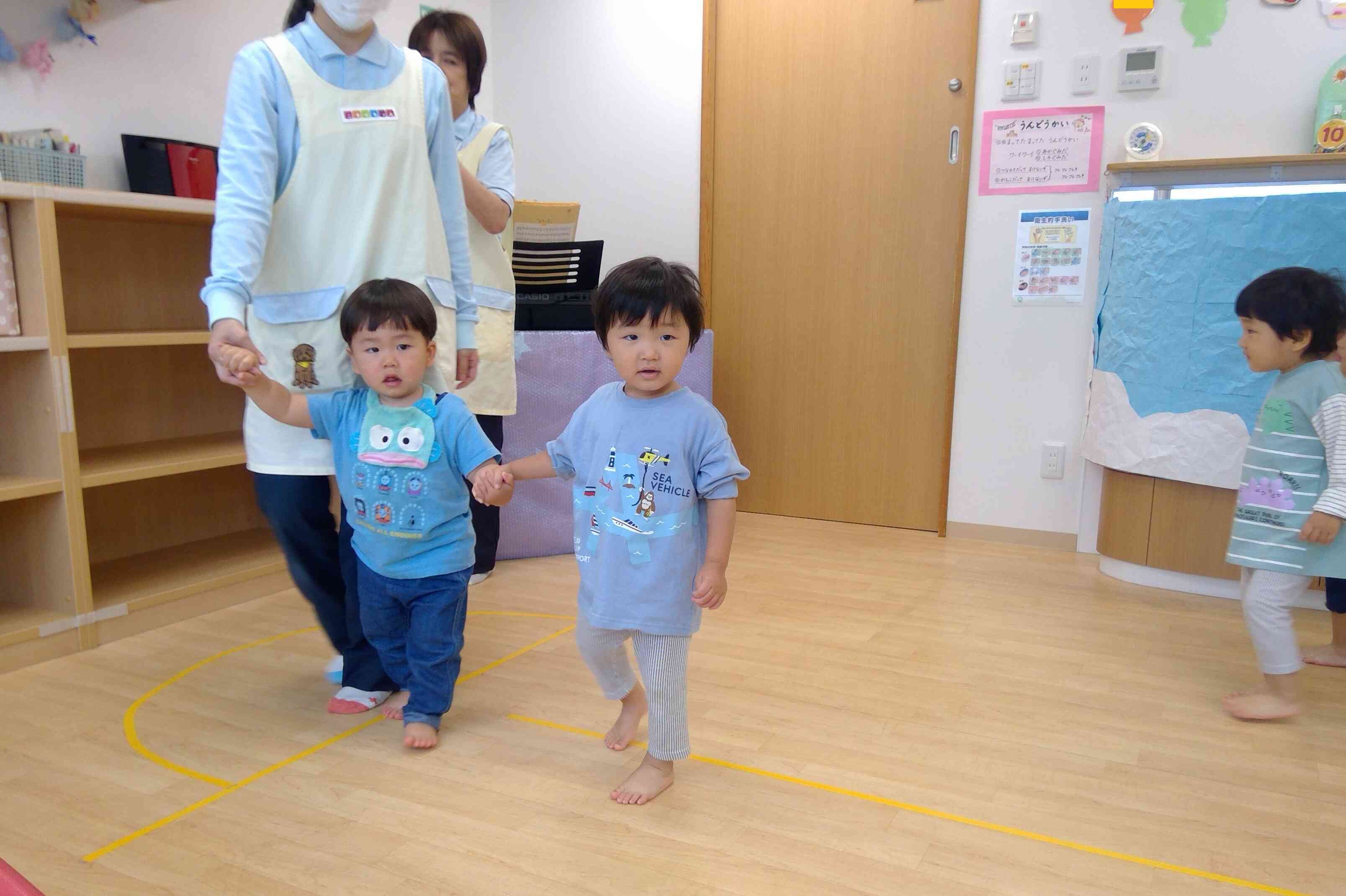 お友だち、先生と一緒に手をつないで、元気に行進しました✨