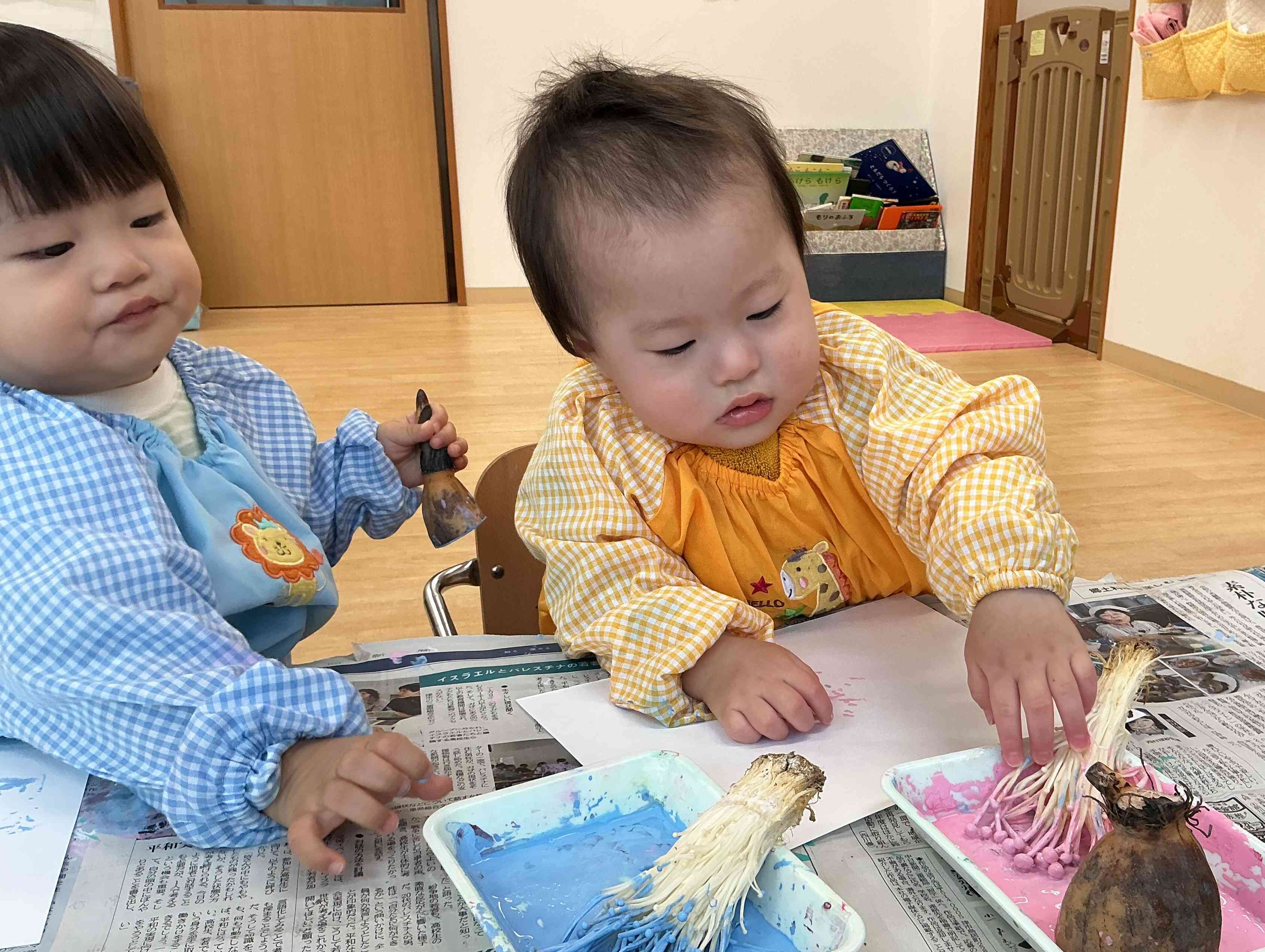 初めは不思議そうな表情の子も、お友だちや先生と一緒にすることで、笑顔も見せてくれました❤